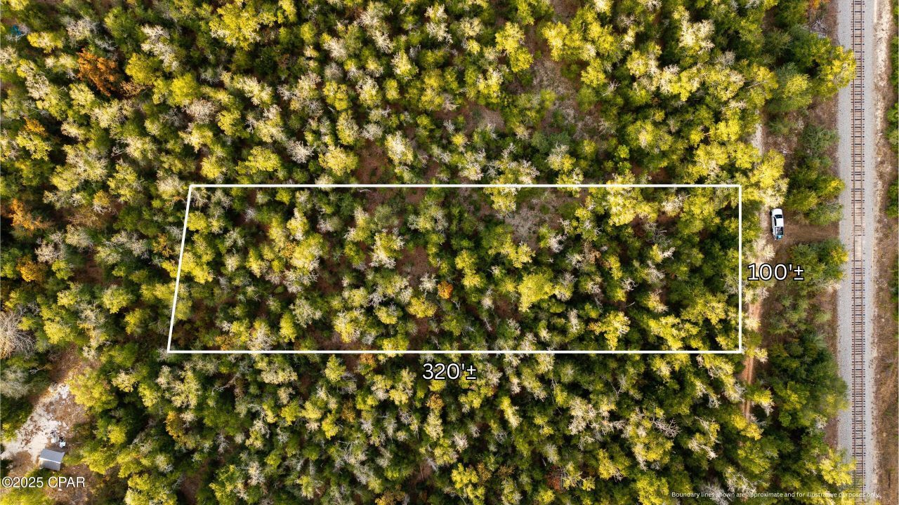 100'x320', Long tract, adjacent to the train track. Zoned Ag-1.