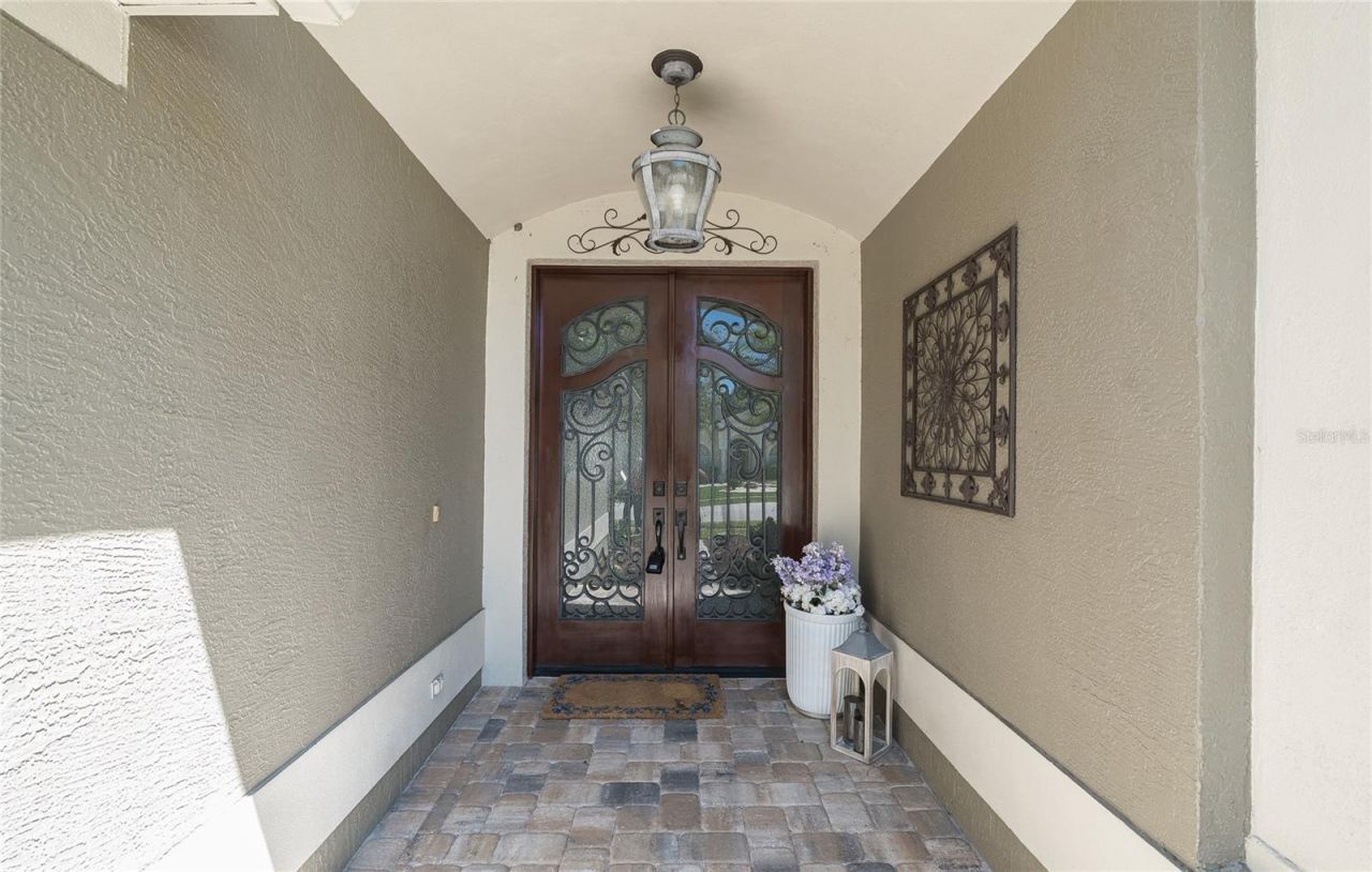 No detail overlooked. Luxurious finishes abound in this well-appointed 5-bedroom, 4-bathroom home. Gated community in New Tampa, with no CDD and low HOA fees. Travertine flooring, Brazilian hardwood, crown molding, custom window casings, custom closet systems, wonderful wine cellar, wrought iron hand railing, 2 fireplaces (gas burning), firepit, water feature and so much more. This home is designed for family and entertaining. Formal living room and dining room serve as this family's game room. Living room offers a pleasing aesthetic fireplace, brick wall. Bedroom downstairs is utilized as an office but can be used as the 5th bedroom. Large EIK open to additional space that includes a full grill, outdoor stovetop plenty of room for entertaining. Several nooks for tv or play area, additional seating. Upstairs primary bedroom is expansive. Beautiful wood floors, French doors open to your luxurious bathroom. Travertine tile, 2 large vanities, custom closet system, tub and private area for toilet. French doors open onto the upstairs balcony. There is a fully furnished gym. 3 extra bedrooms each offering their own unique feel. One has private bathroom. Bonus room/Media room is ideal for those movie premiers, extra space for the toys. You decide. One of the largest homes in this neighborhood, on a quiet cul-de-sac