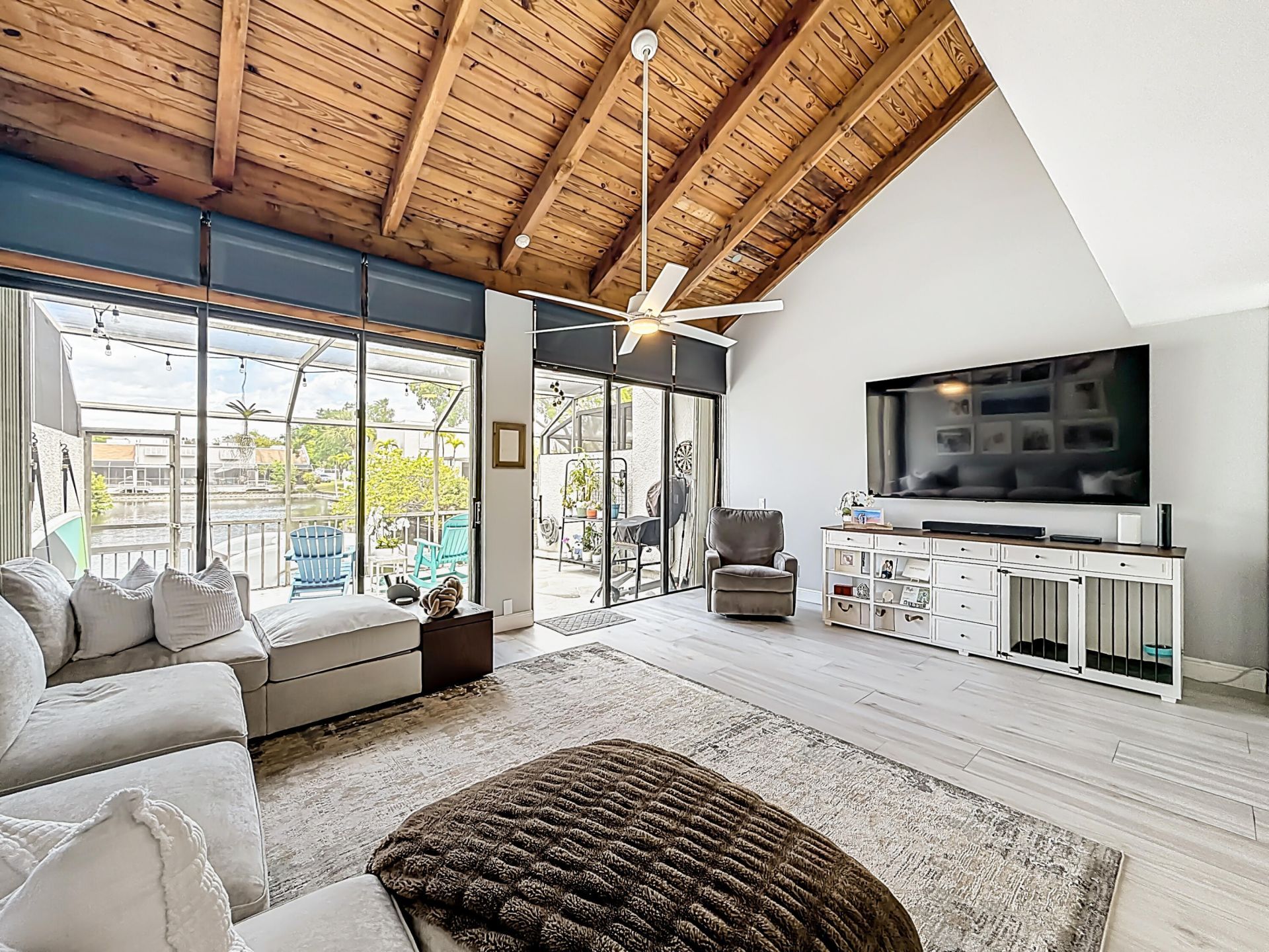 STUNNING WATERFRONT VILLA-COMPLETELY MOVE IN READY WITH PREMIUM UPGRADES THROUGHOUT. This two story open concept home delivers the perfect blend of luxury, style, and South Florida waterfront living. Featuring a brand NEW ROOF (2025), NEW PLANK TILE FLOORS, NEWER AC, Brand new bathrooms, impact front door, & accordion shutters on oversized sliding glass doors, this home offers top tier protection and floods the interior with natural light. Every detail has been elevated, including: Stamped concrete front & back Custom under stair storage Bluetooth fans in bathrooms Two custom closets, including a premium wood master walk in. This home delivers the upgrades, the protection, the waterfront lifestyle, and the modern finishes. HURRY! THIS ONE WON'T LAST!