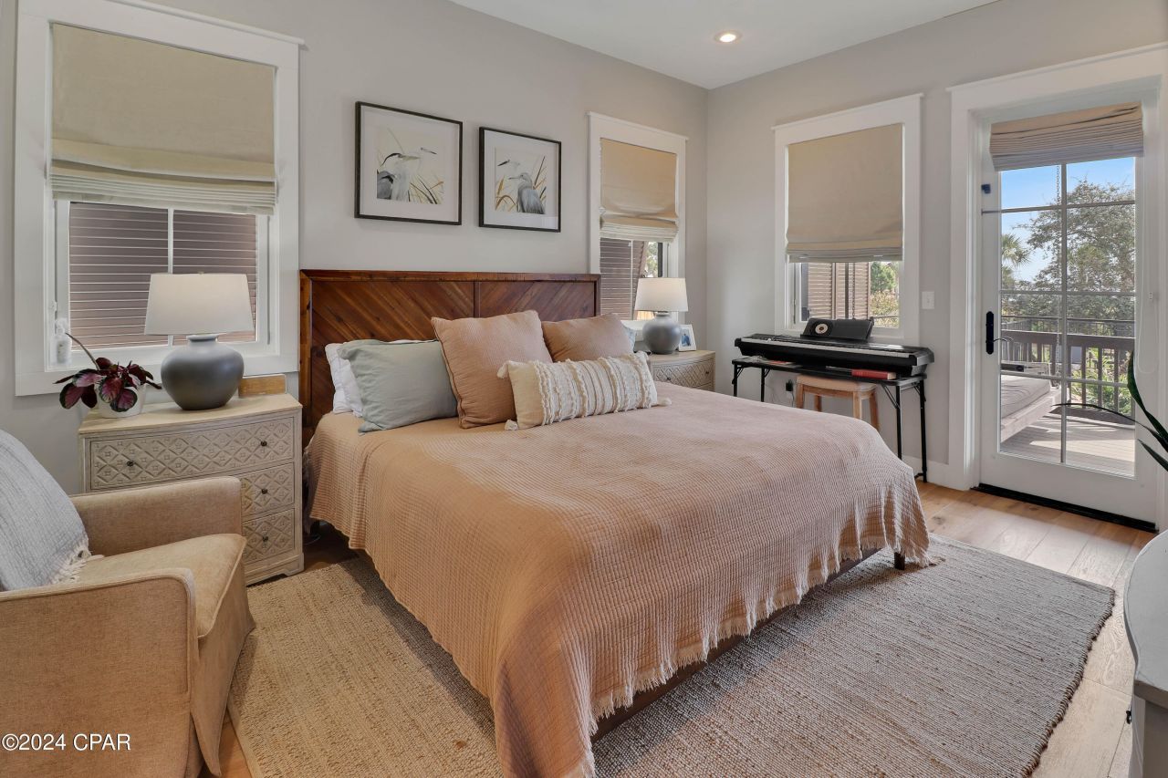 Coastal living at its finest! Step into your dream home with breathtaking, unobstructed bay views and custom, must-see details. The first-floor sanctuary boasts a private primary suite with a porch and poolside view, while the tailor-made bunk room with built-in storage is a delightful bonus for guests. Convenience meets luxury with easily accessible laundry and a full bath from the pool area. Upstairs unveils a perfect blend of a kitchen/living/dining combination featuring a cozy fireplace, hardwood floors, and top-notch stainless steel appliances. An entertainer's paradise, this space opens to an oversized Key West-style porch with louvered shutters and an outdoor BBQ area, all overlooking a private pool and the stunning vista beyond. On the main level, discover a convenient half bath, two guest rooms with a private porch, and a jack-and-jill full bath. Ovation, the epitome of coastal living, provides two bayside docks for boating and kayaking, tennis courts, bayfront and gulf-side pools, and a boardwalk leading to uncrowded, pet-friendly beaches. Ready to turn this dream into reality? Call for a showing and embark on a personalized tour of this exceptional area. Your coastal oasis awaits!