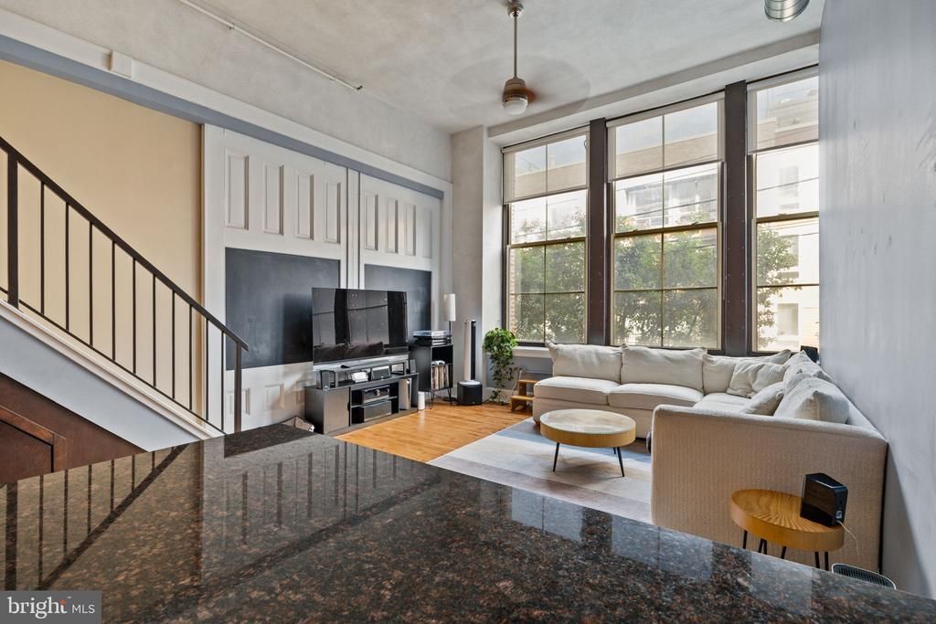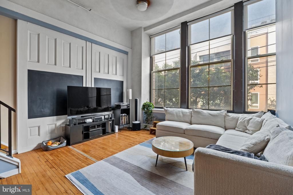 Welcome to Unit 211 at the prestigious Hawthorne Lofts, where historic charm meets modern luxury in the heart of Philadelphia. This exquisite bi-level condominium offers a unique living experience with its one-bedroom plus den! Step inside to discover an open-concept living area adorned with restored hardwood floors and soaring 14-foot ceilings. The three expansive 12-foot east-facing windows fill the space with abundant natural light, complementing the original classroom chalkboards that add a touch of historical elegance. The chef’s kitchen is a culinary delight, featuring granite countertops, sleek wooden cabinets, and high-end Bosch stainless steel appliances. The additional den, currently utilized as a second bedroom, comes with bluestone flooring and restored wooden ceilings, alongside a full modern bathroom. Ascend to the private loft bedroom on the second level, where you'll find three deep closets offering ample storage. Residents at Hawthorne Lofts enjoy an array of amenities, including a state-of-the-art gym, sauna, steam rooms, yoga studio, and a community room equipped with a billiards table and media center. The building also offers a free laundry room and a spacious rooftop deck with breathtaking 360-degree city views. Positioned in a vibrant, walkable neighborhood, you’re just steps away from Whole Foods, Acme, and local favorites like Hawthorne's Café and the Italian Market. This pet-friendly building is more than just a home; it's a lifestyle. Don't miss the opportunity to be part of this dynamic community!