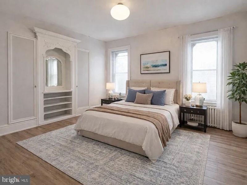 Expansive and Bright Carroll Park 2 Bedroom Unit. Spacious West Philadelphia apartment with large rooms and soaring ceilings throughout, creating a noticeably more open feel than typical layouts. Both bedrooms are oversized and can comfortably accommodate larger furniture. The primary bedroom includes a built-in his/hers wardrobe system with integrated mirror and additional shelving. The second bedroom offers similar scale and flexibility. Living area is wide and usable, with good natural light and classic architectural details, giving the space a lively personality. The layout provides clear separation between living and sleeping spaces with a natural flow between rooms. Kitchen is thoughtfully laid out for everyday use, featuring floor to ceiling cabinetry and discreet pantry closets that add real storage depth. Tile bathroom is full-sized with a practical, spacious layout. Located on a wide street in the Carroll Park section of West Philadelphia, this apartment offers ample neighborhood amenities, sits just steps from the park, and provides easy access to public transit and direct routes into Center City. No application fees - Book your showing today.