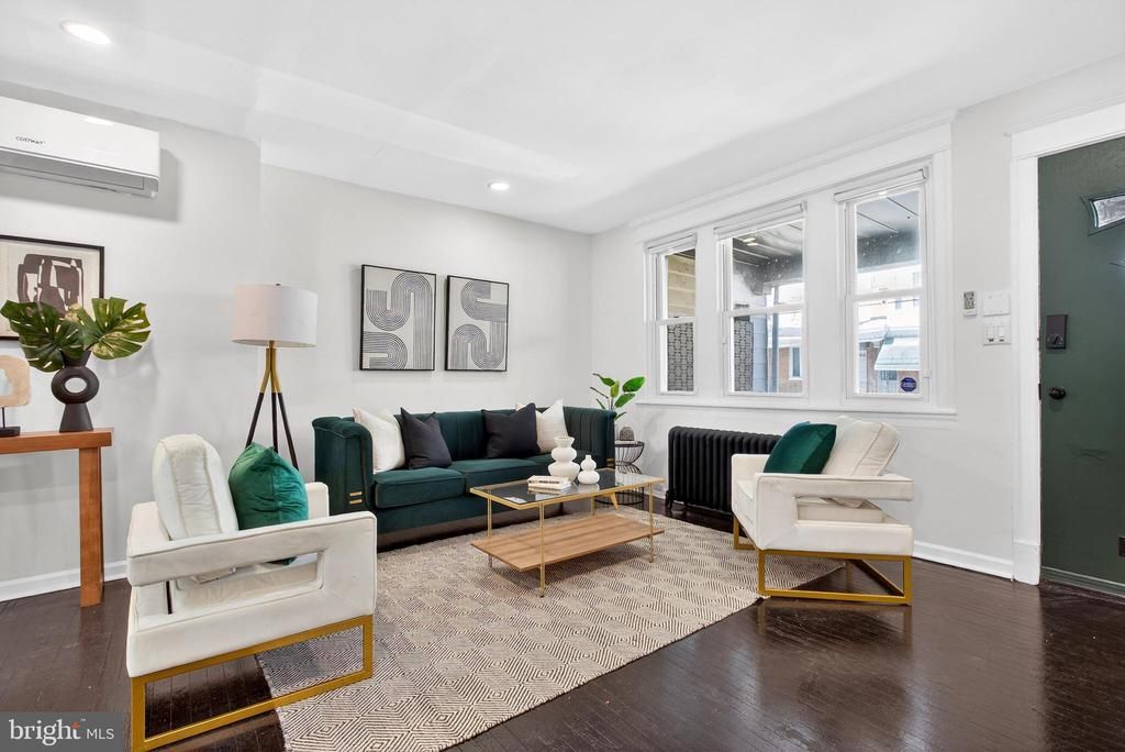 Welcome to 128 E Tulpehocken Street! This beautifully renovated 3-bedroom / 2.5 bathroom East Germantown row home blends modern upgrades with thoughtful design throughout. Step up to the inviting front porch and into the open-concept main level, where hardwood floors and recessed lighting create a warm, contemporary feel. The spacious living area flows seamlessly into the dining space, perfect for entertaining or relaxing at home, and is complemented by a stylish powder room. A convenient under-stair closet offers flexible storage as a pantry or coat closet. The kitchen is a true highlight, featuring porcelain tile floors, stainless steel appliances, quartz countertops with ample workspace, shaker-style cabinets and a tasteful ceramic tile backsplash. Just off the kitchen, a private balcony provides the perfect spot for your morning coffee or a quiet evening unwind. Upstairs, you’ll find 3 bedrooms. The rear bedroom offers generous space and ample closet storage, while the middle bedroom is ideal for guests, a nursery, or a home office. The full hall bathroom showcases a modern vanity, porcelain tile flooring, a subway-tiled tub/shower combo, and a classic Philadelphia skylight that fills the space with natural light. The primary suite, located at the front of the home, features a bright, spacious layout and an ensuite bathroom with a subway-tiled stall shower, tiled floors, and a sleek vanity. The fully finished walkout basement is perfect for a media room, gym, or office and provides direct access to the rear patio and one-car garage. Additional highlights include hardwood flooring throughout, recessed lighting, stainless steel appliances, and a new 4-zone mini-split system for efficient, customizable comfort. Schedule your showing today!!