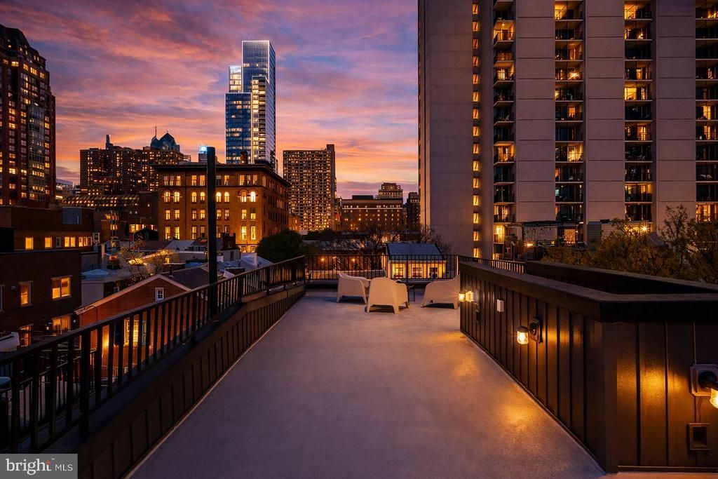 A rare residence, imagined in 2021 by the award-wining architect, Gnomes, in highly sought-after Washington Square West, is a true modern urban gem. Refined interiors and oversized windows create a museum-quality sensibility with a perfect blend of character and elevated lifestyle. Every detail in this home is thoughtfully designed. Natural light streams across the wide plank white oak floors throughout the house. Three private outdoor living spaces, an attached garage with indoor access, home gym, and a separate laundry room, are all rare finds in a Center City home. Garden Floor: A custom designed security front door gate leads you to a brightly lit lounging area that can also serve as an office with glass sliding doors leading to a private urban garden. This floor also has a half bath. Basement: Home gym and storage. First Floor: A dramatic entertaining level with a high floor-to-ceiling window with custom automatic solar shades throughout. An oversized gallery wall ideal for large-scale art offer both privacy and architectural beauty. The sleek, modern kitchen is a chef’s dream, boasting Bertazzoni appliances, quartz countertops, and a built-in fridge. Adjoining the kitchen, a glass door leads to a private balcony overlooking the garden, perfect for morning coffee. Second Floor: Two spacious brightly-lit bedrooms, a full laundry room, and a sleek bathroom with black fixtures. Third Floor: A tranquil primary suite greets with you with a Moooi Pendant light, oversized windows with breathtaking views of the city, walk-in custom California Closet in Luxe Dove, and automatic solar and blackout shades. The spa-like bath includes a double vanity, soaking tub, and two dual shower systems. Down the hall, grab a drink from the wet bar beverage fridge and head to the roof deck for an unbelievable 360 view of the city, enjoy evening cocktails, or simply unwind after a long day. Situated on one of the most coveted blocks on a tree lined street, moments from Rittenhouse Square and Segar Park, this townhouse offers both serenity and city access. Whether you’re strolling to your favorite coffee shop, sampling a new restaurant, or exploring Philadelphia's rich history, this address puts you at the heart of it all. The remaining 5 Year Full Tax Abatement and 5 Year Roof Warranty does not hurt either!