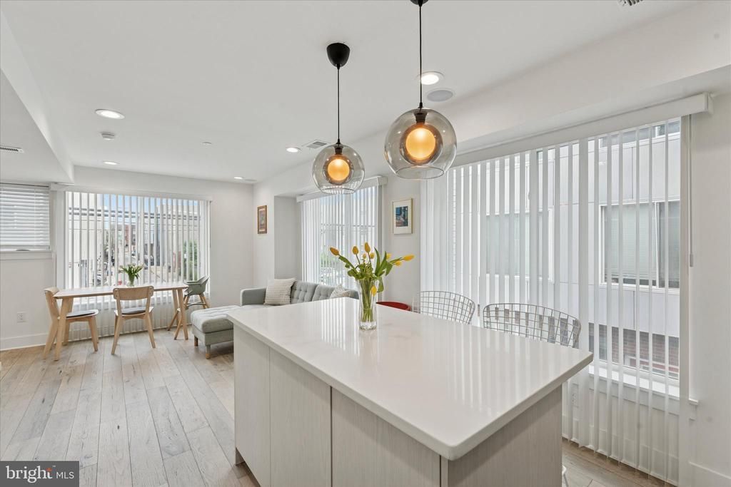 Don't miss this beautiful home! A stunning multi-level townhome that includes 3 bedrooms, 2 full bathrooms, 2 half bathrooms, finished basement, garage, and rooftop patio! Built in 2021, this home offers beautiful spaces from top to bottom! The entry level includes coat closet, utility closet, and access to the 1-car garage for no frills parking in the city. The open living/kitchen area is bright with large windows flooding the space with natural light, and includes closet and powder room. The kitchen features stainless appliances, electric range, tiled backsplash, and island with counter seating. The sleeping quarters is laid out over 2 levels with 2 bedrooms, hall bath, and laundry closet on one floor. The owner's suite occupies the top level for ultimate privacy and includes large windows, two closets, and ensuite bath featuring dual sink vanities and spa-like walk-in shower with multiple fixtures. Just outside the suite, you'll find a wet bar with beverage refrigerator for ease of access when enjoying your private rooftop deck with gorgeous city views including center city! The home also includes a finished basement with half bath for additional usable space. Additional features include recessed lighting and hardwood flooring throughout, built-in sound system, plentiful closets, low monthly HOA fees, and 10-year tax abatement through 2031! If you're looking for a beautiful new home to call your own, make some time to visit!