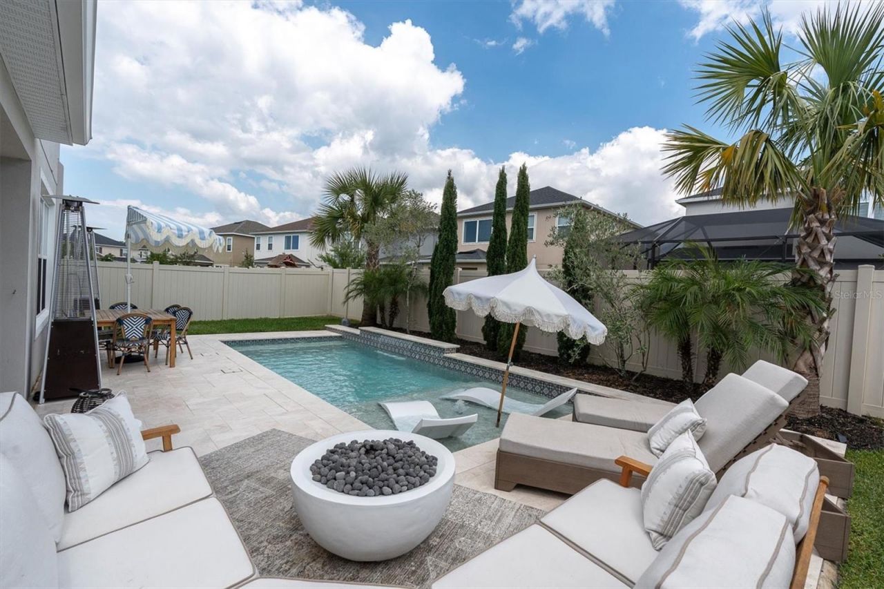 Welcome to refined design, thoughtful upgrades, and effortless indoor outdoor living come together in the heart of Starkey Ranch. Built in 2022 by Taylor Morrison, this Anastasia model is more than a newer home, it is a carefully curated living experience offering 4 bedrooms, 3.5 baths, a dedicated office, bonus room, and a private backyard retreat with a heated and chilled saltwater pool. Craftsman architecture, inviting front porch, and manicured landscaping create a warm yet elevated presence. Inside, the open concept design unfolds with soaring ceilings, abundant natural light. Thoughtfully selected finishes, and fresh Sherwin Williams interior paint in a light, neutral palette that enhances the home's bright and modern feel. The heart of the home is the chef's gourmet upgraded kitchen, outfitted with a built in and convection oven, a cooktop with range hood, quartz countertops, and an expansive island, it opens effortlessly to the great room and dining space, creating the perfect setting for entertaining or everyday living. Every detail has been considered, from the pantry to the natural gas connection, stylish backsplash, designer lighting, and upgraded appliances while being open to the dining room and great room with views of the pool. The great room is anchored by soaring ceilings and enhanced by a designer chandelier from a premier Tampa lighting store, creating a sense of volume and openness that is both impressive and inviting. Step outside to a private backyard designed for both relaxation and entertaining, featuring a heated and chilled saltwater pool with lighting, an oversized paver patio of leathered marble, a sunshelf, a fountain, a customized Mediterranean garden, a covered lanai plumbed for an outdoor kitchen, and a fully fenced yard. Main level primary suite is a true retreat, privately positioned with a spacious layout, dual vanities, stone counters, a walk in shower, and an oversized walk in closet. Upstairs offers three additional bedrooms, including one with an ensuite, a hall bathroom, and a versatile bonus room ideal for a media space, playroom, or secondary living area. Additional highlights include a dedicated office with built in shelving and French doors, a laundry room with front load washer and dryer, a half bath, zoned HVAC, energy efficient double pane and low emissivity windows, a tankless gas water heater, water softener and sink filtration system, tile flooring throughout main living areas, a spacious 2 car garage, and customized hurricane shutters for added peace of mind. The home also features modern utilities including fiber optics, natural gas, and reclaimed irrigation systems. Situated in the award winning Starkey Ranch community, residents enjoy amenities including three pools, parks, 22 miles of scenic trails, a library, ball fields, tennis courts, playgrounds, with a top rated K through 8 school. Conveniently located near shopping, Tampa International Airport approximately 25 minutes away, and within reach of the area's renowned beaches and outdoor recreation. This home offers what today's buyers are searching for but rarely find, newer construction, designer level finishes, functional space, and a move in ready lifestyle with nothing left to do. Thoughtfully priced for today's market, reflecting both the quality of the home and the significant investment in upgrades.