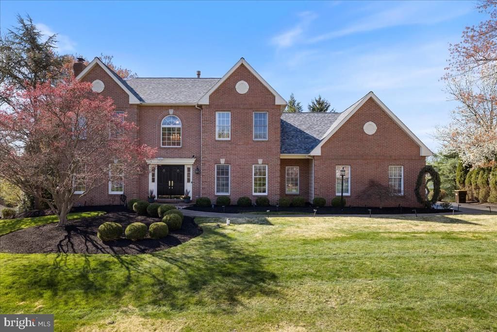 Welcome to a distinguished brick-front Colonial where timeless elegance meets modern sophistication. Meticulously updated and impeccably maintained, this exceptional residence offers a seamless blend of refined design, luxurious comfort, delivering a lifestyle of ease, privacy, and leisure. A grand two-story foyer sets the tone, adorned with a statement crystal chandelier and rich hardwood flooring that flows throughout the main and upper levels. Thoughtfully designed formal living and dining rooms feature exquisite crown molding, picture frame molding, and designer lighting — creating an atmosphere ideal for both intimate gatherings and grand entertaining. At the heart of the home, the custom kitchen is a true showpiece. Appointed with granite countertops, a decorative tile backsplash, stainless steel appliances (most under five years old), a built-in wine cooler, and a newly installed statement hood, this space is as functional as it is beautiful. The adjoining breakfast area opens to a newly constructed Trek deck and a charming gazebo—offering a private, serene setting for morning coffee or evening cocktails. The beautiful family room is bathed in natural light, featuring soaring vaulted ceilings, skylights, and a striking stone fireplace, creating a warm yet sophisticated gathering space. A private first-floor office, elegant powder room with marble flooring, and a well-appointed laundry room add convenience and flexibility. Upstairs, the owner’s suite is a true retreat, complete with a sitting room, expansive walk-in closet, and a newly reimagined spa-inspired bath. Luxurious finishes include porcelain tile, a freestanding soaking tub, an oversized frameless glass shower, and a dual vanity—designed to evoke a five-star experience. Additional bedrooms are generously sized and complemented by a beautifully renovated hall bath, while new carpeting on the stairs adds a fresh touch of comfort. The walk-out lower level has been thoughtfully enhanced with luxury vinyl plank flooring, offering versatile space for a home theater, fitness studio, or recreation lounge, along with ample storage. Recent upgrades—including a new roof with gutter guards and warranty, new gazebo roof, new Anderson windows with warranty, new Trek deck, whole-house humidifier, updated water heater (2020), and integrated Citadel whole house security system with warranty—ensure both peace of mind and modern efficiency. Perfectly positioned just minutes from the charm of Newtown Borough, residents enjoy easy access to fine dining, boutique shopping, cultural attractions, and major commuting routes to Philadelphia, Princeton, and New York City. This is more than a home—it is a lifestyle of comfort, elegance, and effortless living.
