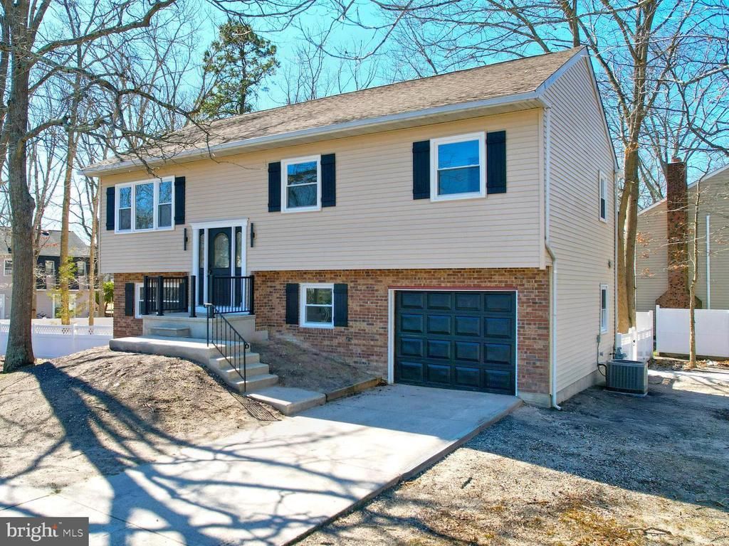 POEN HOUSE APRIL 19th 12-2PM. Somers Point Vacation Hotspot! Three bedroom and an office could be a guest bedroom. Three full bathrooms, remodeled home featuring trendy black kitchen cabinets with quartz countertops. Open layout allows for entertaining your friends and family. 12 x 20 2nd floor deck featuring metal railing and rainproof system for entertainment on the patio below. Master bedroom has oversized en suite with double bowl, farm sink vanity, and huge walk-in closet. Three brand new bathrooms, featuring tile showers, new custom vanities, and faucets. All new trim and interior doors. New waterproof, laminate flooring, and fresh paint. New matt black lighting and electrical fixtures. New windows throughout. Brand new efficient, gas heating and air-conditioning. Brand new tankless water heater. Updated electric and plumbing throughout. One car attached garage perfect for additional storage. Family room features a brick fireplace and sliders to a private patio under the deck with a rain collection system to keep you dry when its raining. Large laundry room. Corner lot with fenced in rear yard. Tennis courts across the street perfect for practicing your pickleball skills.