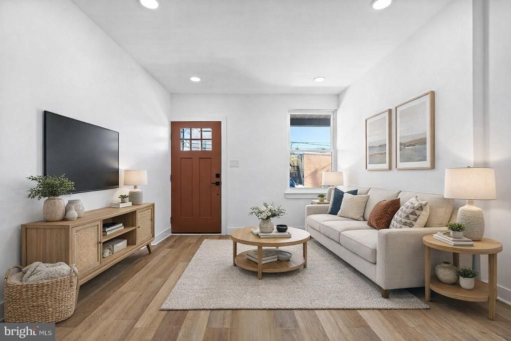 Newly Renovated, Thoughtfully Designed 2 Bedroom Near Bartram's Garden. Clean, design-forward new renovation with a sharp eye for detail and material contrast throughout. Finishes and tones all feel intentional and cohesive across the unit. The main living space is open and efficient, anchored by wide-plank flooring and ample lighting that carries consistently from front to back. Kitchen is thoughtfully executed with a modern mix of matte wall cabinetry, warm wood grain lowers, stainless steel appliances, and a balanced tile backsplash. The kitchen features a large wood-trimmed window that adds a crisp architectural focal point above the sink. Bedrooms have a bright feel and good wall space for many furniture layouts. Both include well-integrated closet space with calm-toned doors. Bathroom is crisp and contemporary, featuring a striking tile surround, modern fixtures, and wood vanity tones matching the kitchen, all brand new throughout. Additional features include in-unit washer/dryer, a private rear patio space, and dedicated basement storage. Set on a residential West Philadelphia block near the 52nd Street corridor, with quick access to I-76, along with nearby shops, everyday conveniences, and local transit options. No application fees, book your showing today.