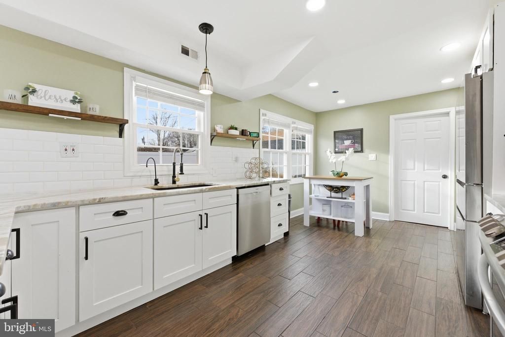 Lovely 5 bedroom colonial home now showing! The entryway features an energy efficient door, wainscoting panels and is flanked by the convenient first floor bedroom on the right and formal living room with tiled flooring and fireplace (non-functioning) on the left. Straight ahead is the beautifully updated kitchen with shaker cabinets, peninsula seating, built in microwave and breakfast bar. The kitchen seamlessly flows into the comfy family room, which also has access to the living room creating a modern, open floorplan. Upstairs is a primary bedroom with a private bath in addition to the hall bath and three more bedrooms. Glass sliders in the kitchen open to the fenced in backyard. Major systems have been replaced recently, HVAC (2020) and HWH (2024). Located on a corner lot, with off street parking and garage space for one car.