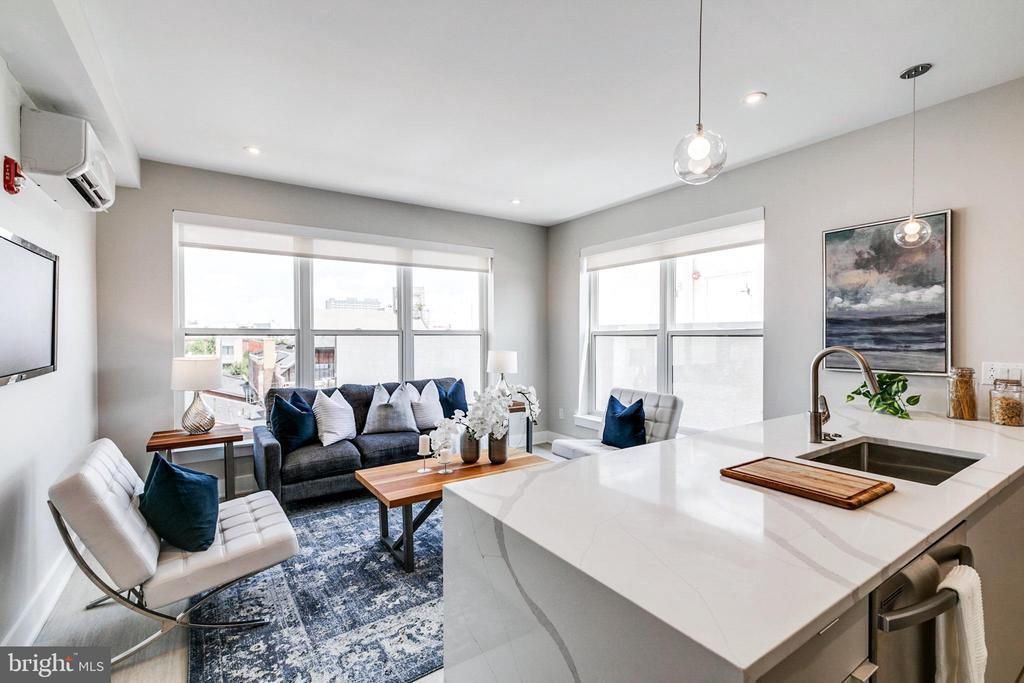 Welcome to - The Maven! Don't pass up a great opportunity to secure a beautiful residence in this 28 unit community located steps away from Fairmount Avenue. Developed by Khosla Properties, this brand new 5-story apartment building features a full-service elevator, fully furnished green roof deck with picturesque skyline views, bike room, and mail/package room. The Maven is conveniently located on the booming Ridge Avenue and walking distance to the Broad Street Line, Center City, The Met, ALDI, Santuccis, Libertee Grounds, Osteria, Bar Hygge, Tela’s Market, and more! We are also PET FRIENDLY! Reach out today for unit availability and to set up a tour. The fourth and fifth floor variation of this layout offer amazing skyline views from the comfort of your living room! This functional space features a functional living space, large bedrooms and is highlighted by top of line ultra-modern finishes which include Samsung stainless steel appliances, modern European style cabinetry, quartz waterfall countertops, Latch smart access keyless entry, organized closet systems, and spacious layouts with plenty of natural light. REDUCED PRICING + REDUCED MOVE IN FEES: Advertised pricing is contingent on 16-18 month lease agreements. 12-16 month leases will be rented for $2150/month. Approved prospects will only be required to pay 2 months rent (first + security) to move in.