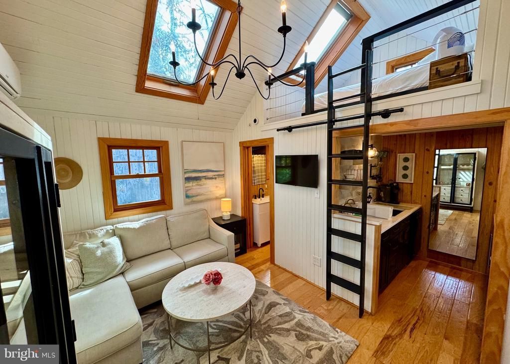 Interior: Bathroom - Walk-In Shower, Built-Ins, Floor Plan - Open, Kitchen - Gourmet, Skylight(s), Wood Floors