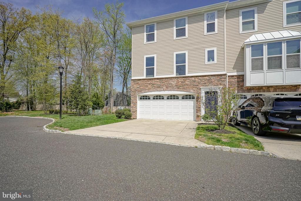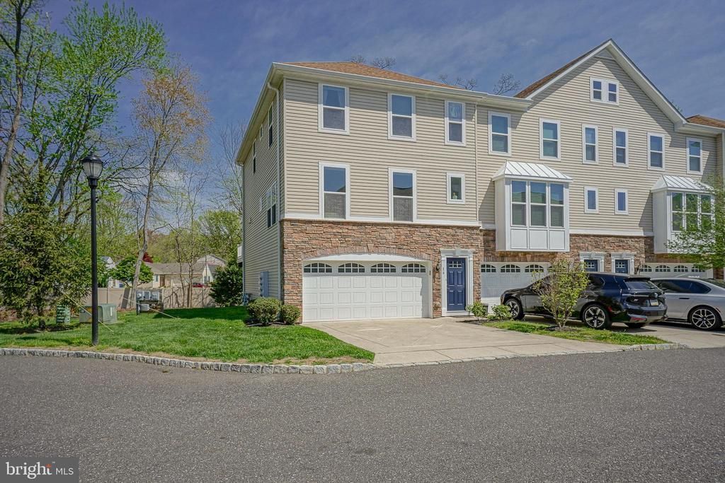 Turn-key, upgraded, and perfectly located—this stunning end-unit home checks every box. Tucked away on a quiet cul-de-sac location, this home immediately impresses with its eye-catching stone and vinyl exterior and desirable two-car front-entry garage featuring a 2" insulated garage door. Inside, you’ll find a light-filled, open layout enhanced by 2nd floor 9-foot ceilings, rich engineered wood flooring, hardwood stairways, and recessed lighting. The finished lower-level recreation room offers the perfect flex space for entertaining, a home office, or gym—complete with additional storage & upgraded recessed lighting. The show-stopping kitchen is designed to impress, featuring granite countertops, stainless steel appliances, a stylish backsplash, upgraded 42” cabinetry, under cabinet lighting and a sleek bar nook with additional cabinetry—ideal for hosting or everyday living. Attached to the kitchen is a large living room filled with all-day natural sunlight steaming through expansive windows, creating a warm and airy atmosphere. Step outside to your oversized 18x16 Azek deck, with afternoon and morning sun, perfect for relaxing or entertaining guests. Upstairs, retreat to the luxurious primary suite with tray ceilings, crown molding, a custom walk-in closet with custom built-ins, and a spa-inspired bath with a jetted jacuzzi tub and double sink granite vanity. Two additional generously sized bedrooms, all with ceiling fans, and a convenient second-floor laundry complete the upper level. With over $75,000 in upgrades, plus low-maintenance living with HOA-covering snow removal and lawn care, this home delivers both style and ease. Located just minutes from shopping, dining, and major highways including 295 and the NJ Turnpike—with a quick commute to Philadelphia—this is the one you’ve been waiting for. Don’t miss your opportunity to own this exceptional home—schedule your private showing today!