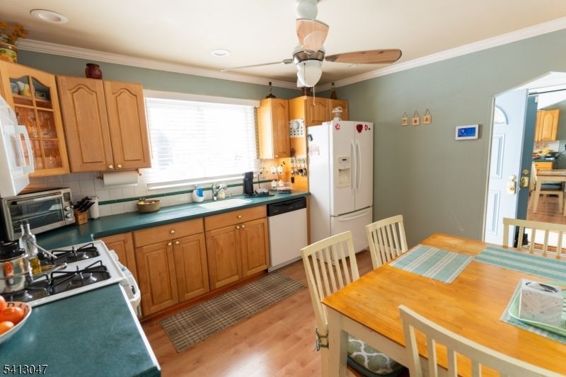 Beautifully maintained 3-bedroom, 2 full bath ranch offering comfort, space, and versatility. Hardwood floors and elegant crown molding enhance the home throughout. The spacious eat-in kitchen features under-cabinet lighting, abundant storage, and excellent pantry space, with a convenient side door leading directly to the yard. The inviting living room provides room for both relaxing and a dining area. Recently renovated first-floor full bath adds modern appeal. A year-round Florida room with heat and A/C opens to the deck and backyard perfect for entertaining. The finished basement offers flexible use as an office, family room, or recreation space, and includes a renovated full bath, workshop, laundry area, and generous storage. Newer vinyl siding enhances curb appeal. Ideally situated on a quiet dead-end street with a park directly across the way. Just minutes to shops, restaurants, and transportation to New York City. A wonderful place to call home.