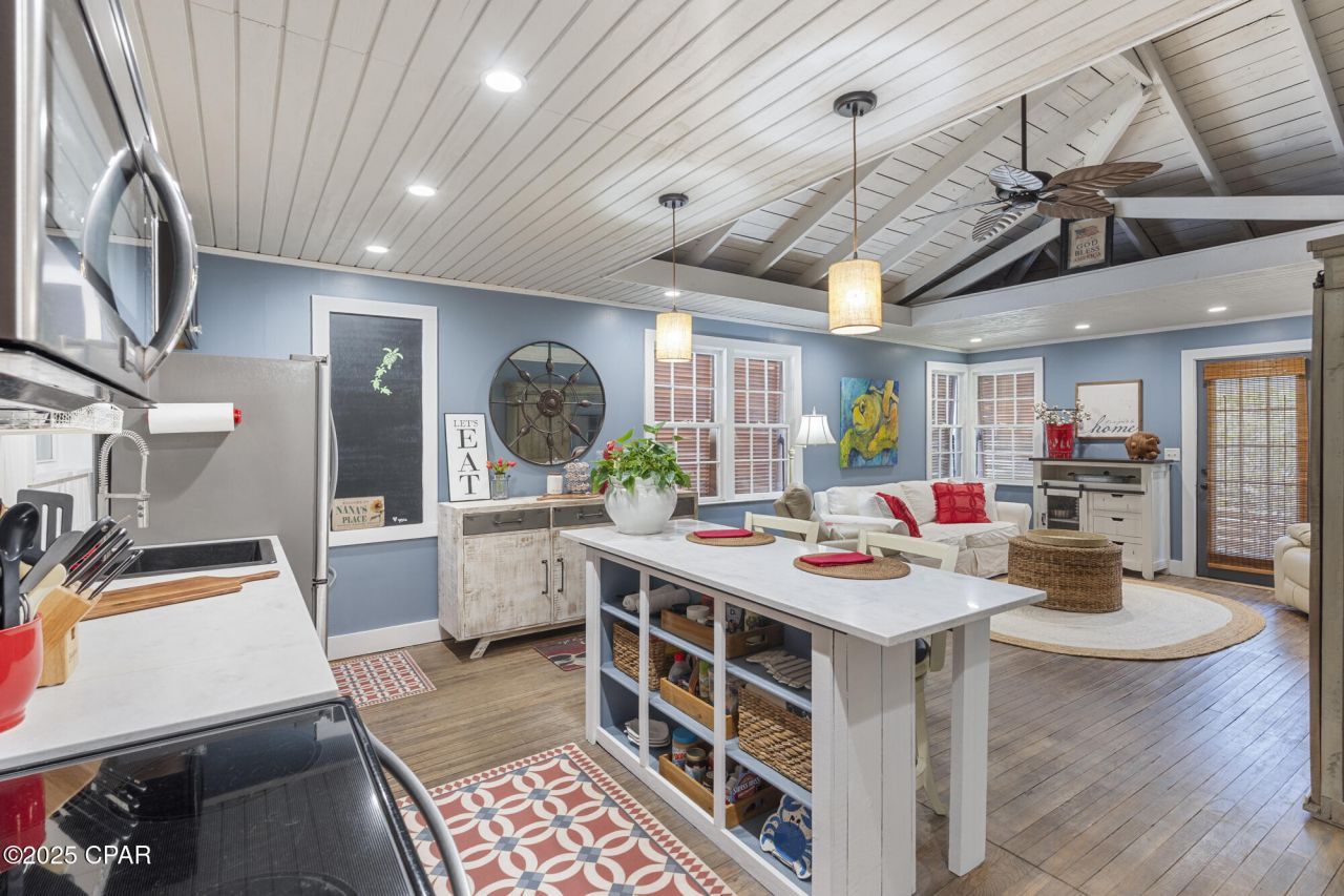 Welcome to this beautifully renovated 3-bedroom home on a spacious corner lot in the heart of Historic St. Andrews! Perfectly located within walking distance to the Bay, St. Andrews Marina, Shrimp Boat, Captain's Table, Uncle Ernie's, restaurants, shopping, and entertainment. This home blends historic charm with modern updates. Inside, you'll find freshly painted walls (2023), updated flooring, and an original built-in bookcase that dates back to the captain's quarters of salt boats. The kitchen features stainless steel Whirlpool appliances, and a farm-style sliding door leads to the laundry nook with a 2025 stackable washer/dryer and water heater. The HVAC system (new in 2018) is located in the attic and has been serviced twice a year. Both the plumbing (to the street) and the electrical system have been completely redone, giving peace of mind for years to come. The exterior of the property offers a large fenced backyard and carport, along with two 10??20 sheds, both equipped with full electrical. One is a classic saltbox-style shed, while the other is insulated and features AC, a half bath, lofts, and a mini refrigerator?perfect for guest space, a home office, or even rental potential. The lot is beautifully landscaped with jasmine, crape myrtles, and monkey grass, adding to the charm of this historic St. Andrews home. The perfect blend of beach house charm and backyard oasis living?this home is coastal living at its finest. The history, location, and upgrades make this a truly special opportunity in St. Andrews.