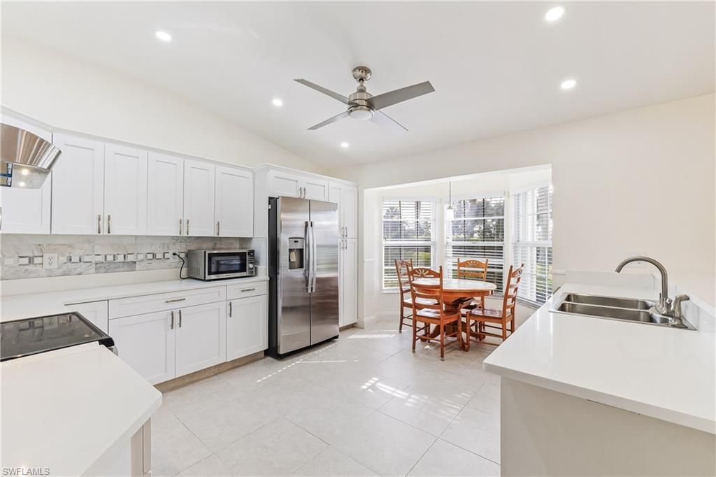 Step into this beautifully updated home nestled in the highly desirable Herons Glen community of North Fort Myers! Perfectly positioned with serene golf course views and water glimpses in the distance, this light-filled residence offers both comfort and style in a peaceful, private setting. The home has been fully renovated with a NEW AC October 2025 and features tile flooring throughout, creating a clean and modern feel. The updated kitchen shines with white cabinetry, quartz countertops, a sleek backsplash, stainless steel appliances, and a cozy eat-in area—perfect for casual dining. With 3 spacious bedrooms and 2 fully remodeled bathrooms, you’ll enjoy modern walk-in showers, updated vanities, and elegant finishes throughout. Additional highlights include a bright Florida room currently used as a home office, a large living/family room with a skylight, a dedicated laundry area, and a two-car garage. The home also offers a combination of storm shutters and impact-resistant windows and doors for added peace of mind. Step outside to the screened rear lanai, where you can relax or entertain while overlooking the 4th hole—an ideal spot to enjoy Florida’s beautiful weather. Living in Herons Glen means access to an impressive array of amenities, including an 18-hole championship golf course, tennis and pickleball courts, fitness center, bocce and shuffleboard, and a vibrant clubhouse. Residents enjoy a resort-style pool and spa, on-site restaurant and bar, billiards room, ballroom, library, and various social and hobby spaces. This home truly offers the best of Florida living!