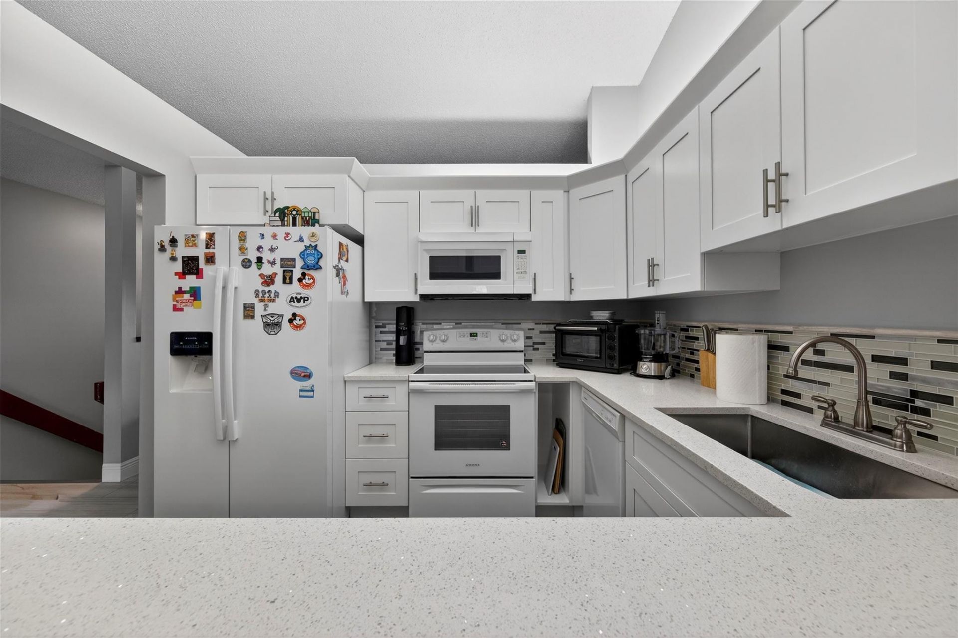 Appliances: Dishwasher, Disposal, Dryer, Electric Range, Electric Water Heater, Icemaker, Microwave, Refrigerator, Washer