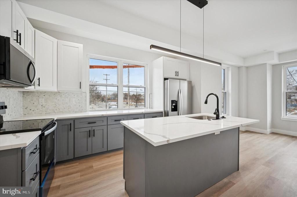 Welcome to 214 W Cumberland St, a new construction corner duplex with 10 year tax abatement. This corner property is located in hot Norris Square area and includes separate entrances for each of the bilevel 2bd/2ba units. Constructed with classic red brick and a dark blue facade paneling gives the property a strong and modern presence. Both units are bright with tons of windows for natural light, sleek kitchen and bathroom designs, oak LVP flooring, and separate outdoor spaces for each unit. The upper unit has a central kitchen with nice island, marble backsplash, huge living room, and convenient powder room. Heading upstairs there are two bedrooms, two bathrooms, laundry closet, and roof deck made with composite decking over a commercial TPO roof. The lower level is light and spacious with a large sliding door off of the living room that leads to the rear yard. The kitchen has bar seating with waterfall edge countertop, marble backsplash, stainless steel appliances, and coat closet. Heading downstairs is two bedrooms and two bathrooms as well as a laundry closet. Estimated rents are around $2000 for each unit. Perfect opportunity for house hackers to live in one unit and lease the other.