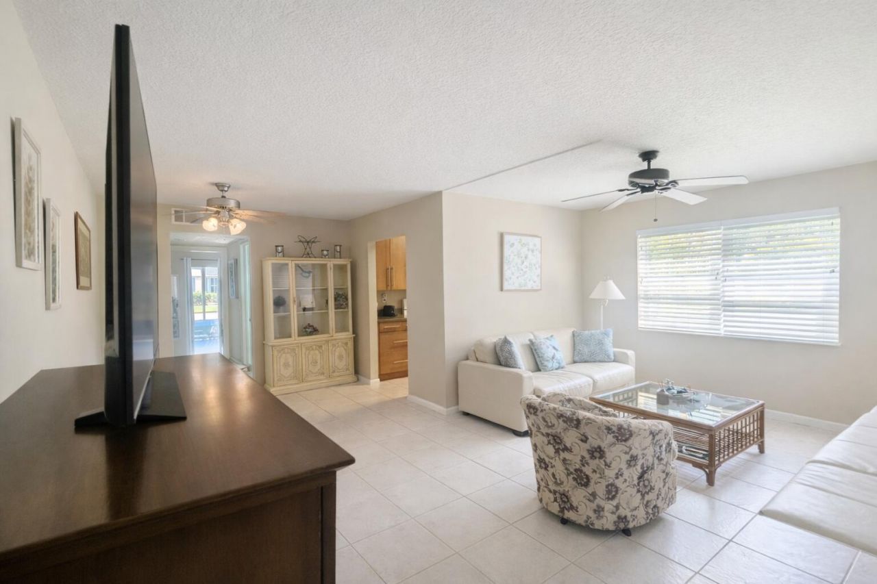 55+ Gated Resort Style Community. This Pristine, Ground Floor Corner unit is Fully Furnished with Updated Kitchen and Baths. Tile Floors throughout. Corner Unit provides extra Light with added windows Kitchen, Master Bath and Bedroom. Easy access from your Parking Spot Directly in Front of your Patio Door! Hvac is 2021. The Building is beautifully Maintained with Concrete Work, Painting, New Walkways, Gorgeous Resident Patio and Reserve Funds. Roof has estimated 10 years remaining. This is a NO RENTAL Building. Pets allowed, including small dogs with Board Approval. Quiet and Conveniently located a short distance from the Havergill Gate; Community Center & Somerset Pool & Tennis Courts. Sold AS-IS & Furnished. Century Village is a Resort Style 55+ Community with 24 hour Manned Gate and Security. Courtesy Transportation within the community, as well as neighborhood stores, medical offices and more. Many community pools to choose from, Theater, Clubhouse, Tennis, Pickleball, Bocce, Shuffleboard, Sailing and so much more! Come enjoy everything this vibrant community has to offer! Minutes to PBI Airport, nearby Outlet Mall, Downtown Shopping and Restuarants, as well as local Beaches.
