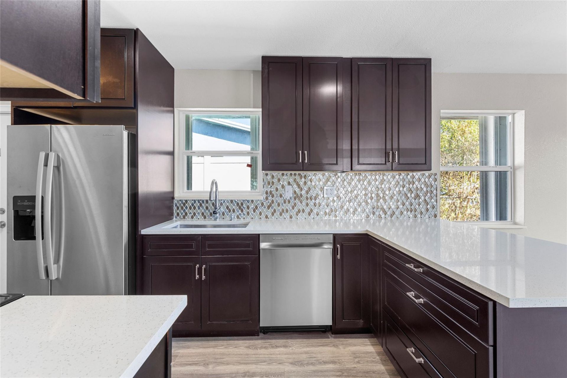 Beautifully updated 4-bedroom, 2-bath single-family home featuring a new roof, fresh interior and exterior paint, and a lavish kitchen complete with stainless steel appliances. The home offers wood flooring throughout, along with porcelain bathroom flooring and matching wall tiles for a clean, contemporary finish. Additional upgrades includes new washer and dryer combo, delivering a truly move-in-ready experience. Centrally located near shopping, beaches, and major expressways, this home provides the perfect blend of comfort, style, and convenience.