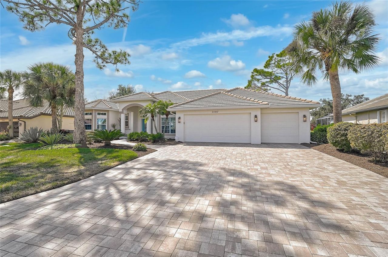 Welcome to this exceptional residence in the sought-after community of Calusa Lakes, gracefully positioned along the 13th fairway of the championship-level semi-private golf course and framed by impeccable curb appeal. A stately paver driveway and walkway are complemented by lush, manicured greenery, creating an inviting first impression. The highly coveted 3-CAR garage provides ample space for vehicles, storage, or hobby pursuits. Inside, the thoughtfully renovated interior showcases light, contemporary cabinetry, an elegant backsplash, quartz countertops, and a gas range-perfectly suited for the culinary enthusiast. The home features four bedrooms, two of which are enhanced with spacious walk-in closets, and one could also be utilized as an ideal private office or den space. There is a seamless flooring design with no carpet throughout, ensuring both sophistication and ease of maintenance. The primary suite is privately situated on its own side of the home, offering a tranquil retreat. Its beautifully updated bath includes a spacious walk-in shower designed with comfort and style in mind. Step outside to the west-facing travertine deck, where a private heated pool and spa invite relaxation. The outdoor living space is further enhanced by an outdoor shower, a new pool heat pump, and solar panels for energy efficiency. Residents of Calusa Lakes enjoy outstanding community amenities, which include a championship-level semi-private golf course; however, residents are not required to join the club. The community has also added brand new pickleball courts for active lifestyles and friendly matches right in the neighborhood. Additional recent upgrades include a NEW ROOF (2022), a new HVAC system (2025), and full hurricane protection for peace of mind. Ideally located just moments from the charming boutiques, fine dining, and performing arts venues of Venice Island. This home also offers convenient access to Gulf beaches, major highways, and a new hospital facility-blending refined living with everyday convenience. BE SURE TO VIEW THE 3-D & AERIAL TOURS.