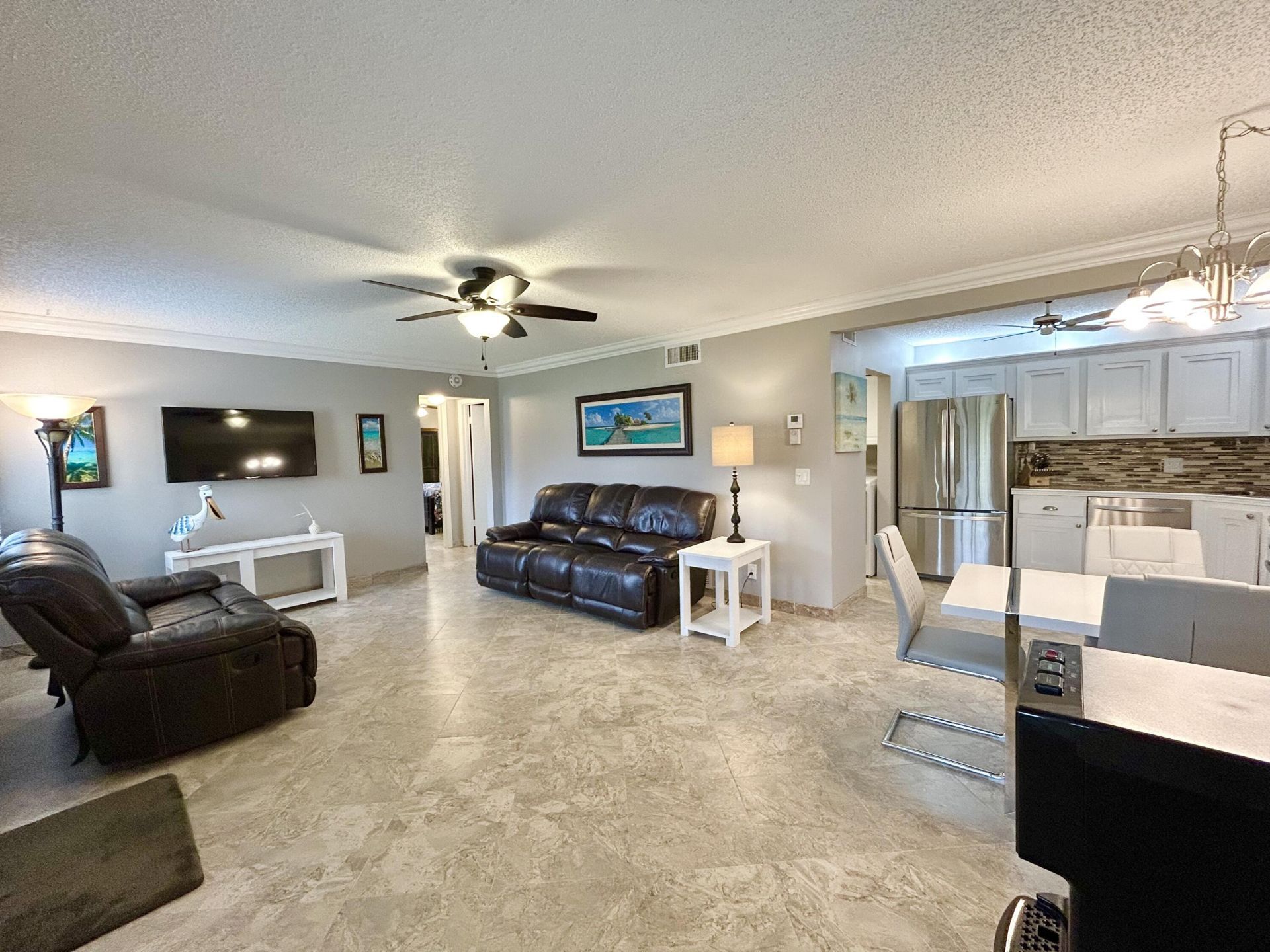 Beautiful 2 bedroom 2 bath condo located in the active 55+ community of Pine Ridge II. Renovated from top to bottom w elegant crown molding & new tile flooring w accoustic underlayment throughout the entire property including the balcony. HURRICANCE/IMPACT WINDOWS for storm protection. New electric panel. New A/C. Kitchen features glass backsplash, upgraded stainless steel appliances w double oven range & full sized refrigerator. Large food pantry w 10 drawers. Utility/laundry room offers extra cabinetry & Kenmore washer/dryer w extra capacity stainless steel tub. All windows have new blinds including designer crank down blinds on the balcony. Both bedrooms & bathrooms offer walk in custom closets, tiled walk in showers, frameless glass doors and tiled walls. THIS PROPERTY IS A MUST SEE !! Community is offers a clubhouse, heated pool, bocce & shuffleboard. Residents are very active with parties, get togethers & events. Come join the fun!!! Centrally located to the beach, airport, shopping, medical, I95 & turnpike.