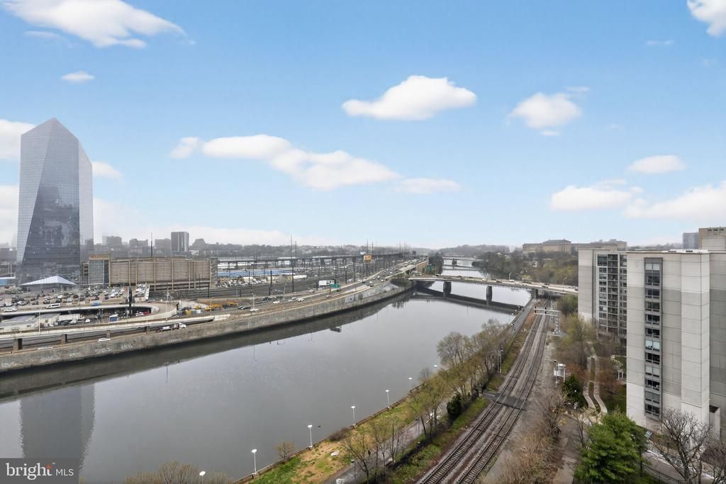 Welcome to Rivers Edge Condominiums—luxury living in the heart of Logan Square. This stunning, contemporary multi-level residence offers 2 bedrooms and 2 full baths, all in pristine, move-in-ready condition. The building features a 24-hour doorman and impeccably maintained common areas, delivering both comfort and peace of mind. Step inside and you’re immediately greeted by an abundance of natural light and a spacious, thoughtfully designed layout. A large four-door coat closet provides exceptional storage. The main level features a versatile second bedroom—currently styled as a sitting area—complete with a beautifully updated full bath and a generous walk-in closet. Elegant plantation shutters add a refined touch throughout the home. The lower level is designed for both relaxing and entertaining, showcasing a bright, open living room with breathtaking views of the Art Museum and the river. The spacious dining area flows seamlessly into a fully updated, chef-inspired kitchen featuring premium GE Monogram appliances, first-class cabinetry, abundant storage, and a granite island with seating—perfect for gathering. Floor-to-ceiling sliding glass doors open to a private deck, where you can enjoy truly spectacular views. Upstairs, the primary suite offers a private retreat with dramatic floor-to-ceiling windows capturing incredible sunsets and river vistas. The suite includes a separate sitting area, ideal for a home office or lounge space. The spa-like primary bathroom is designed for luxury, featuring a Jacuzzi tub, oversized walk-in shower, double vanity with ample storage, and a private water closet, along with additional built-in storage for ultimate convenience. Additional highlights include four separate heating and cooling zones for customized comfort and energy efficiency. To complete the package, this unit includes one of the most desirable parking spaces in the garage—conveniently located directly next to the roll-up entrance for easy access to the lobby.
