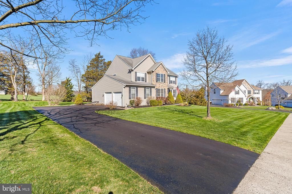 Welcome to this beautifully maintained Rotelle-built home in the desirable Miller’s Run community. From the moment you arrive, you’ll appreciate the pride of ownership and thoughtful upgrades throughout. Enter into the spacious foyer, where 9-foot ceilings and gleaming hardwood floors set the tone for the main level. The foyer is flanked by a formal dining room and formal living room, offering elegant spaces for entertaining. Continue into the heart of the home—the inviting main living area—featuring a cozy family room with a wood pellet stove insert, perfect for relaxing evenings. The family room flows seamlessly into the breakfast nook and well-appointed eat-in kitchen. Here you’ll find a center island, 42-inch Kraft Maid solid wood cabinetry, granite countertops, stainless steel appliances, a pantry, and abundant cabinet and counter space—ideal for both everyday living and hosting. Conveniently tucked away on the main level are a half bathroom, a generously sized laundry room with a second pantry, and access to the oversized two-car garage. Sliding doors off the breakfast nook lead to a low-maintenance Trex deck overlooking open space, where you can enjoy breathtaking sunset views. Upstairs, you’ll find four spacious bedrooms, including a massive primary suite complete with a walk-in closet and a beautifully updated ensuite bath featuring a seamless walk-in shower and dual vanity with Quartz countertop. Three additional bedrooms share a full hall bathroom. The full basement offers even more flexibility, partially finished with a half bathroom and providing ample storage or the opportunity to create additional living space to suit your needs. Additional upgrades include oversized gutters with leaf guards, a radon mitigation system, a backup water-powered sump pump, and SimpliSafe fire and burglar alarm for added peace of mind. Ideally located near major routes including 309, I-476, and I-78, and just minutes from parks, recreation, shopping, and dining, this home offers the perfect blend of comfort, convenience, and community living. Mortgage savings may be available for buyers of this listing.