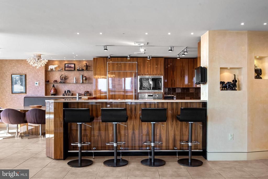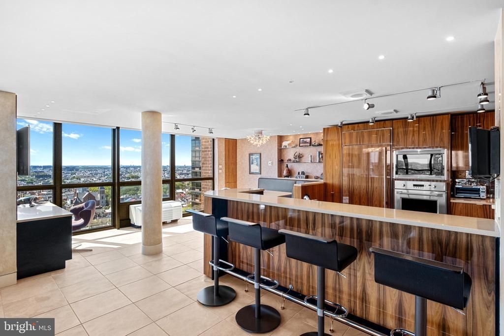 Exceptional residence spanning nearly 4,000ft2 on the 20th floor of Independence Place Condominium on Washington Square Park. Several units were gutted/combined and completely reimagined as this one-of-a-kind home. Floor to ceiling windows and three exposures (South/East/North) allow for incredible natural light and panoramic views. Flexible, open floor plan designed for both larger scale entertaining and more casual, everyday living. The most extraordinary features/finishes throughout, including venetian plaster walls, custom cabinetry, millwork, lacquered wood paneling, doors/trim, integrated lutron lighting system, and recessed baseboard detail. Gallery entry opens to custom kitchen w/ every conceivable amenity:counter seating for four, custom cabinetry, Wolf induction cooktop, paneled subzero refrigerator, metallic Walker Zanger tiled backsplash, breakfast area w/ built-in banquette, and separate office nook. Ktichen opens to dining and living spaces with South and East views, corner fireplace, and wet-bar/walk-in pantry area with under-counter wine storage and refrigerated drawers. Down the hall, two well proportioned bedrooms share a newer, contemporary hall bath. The over-the-top primary suite is outfit with custom furnishings to accentuate southern views, a second fireplace, and features two walk-in closet/dressing areas, two natural stone clad en suite bathrooms w/ steam shower, jetted tub and frameless glass enclosures, a separate lounge area, and an additional gym/studio space with sauna and kitchenette. Thoughtful laundry area w/ full size, side-by-side machines and custom cabinetry is cleverly hidden behind a sliding door system. Private terraces off the living space and primary suite. Remote controlled custom window treatments and Sonos audio throughout. No expense was spared, and every detail has been thoughtfully considered in design/construction. Residents of Independence Place enjoy 24-hour door staff and concierge, newly redesigned lobby, state-of-the-art fitness center, and on-site parking garage with direct lobby access (additional monthly fee). Close proximity to Philadelphia's premier dining, shopping, lifestyle and cultural institutions. Easy highway access into/out of the city.