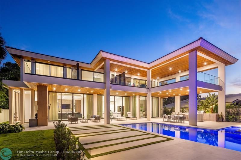 Custom, new construction contemporary estate in the gated Seven Isles enclave. This 7,300± SF showpiece by esteemed builder Jeff Hendricks offers 6 en-suite beds & 7.5 baths, w multiple oversized balconies designed for exceptional indoor-outdoor living and sweeping water views. A private gated entry opens to a double-height foyer w Mosa White marble floors & Dayoris solid slab doors. The chef’s kitchen features dual islands, Poggenpohl cabinetry, Santa Margarita quartz, book-matched Italian marble & top-tier appliances. Outdoor entertaining includes a heated saltwater pool, vapor fireplace & summer kitchen. A concrete dock with 16,000-lb boat lift provides deepwater access. Additional highlights include 2 garages, elevator, gym w steam shower & back-lit wet bar—just moments from the beach.