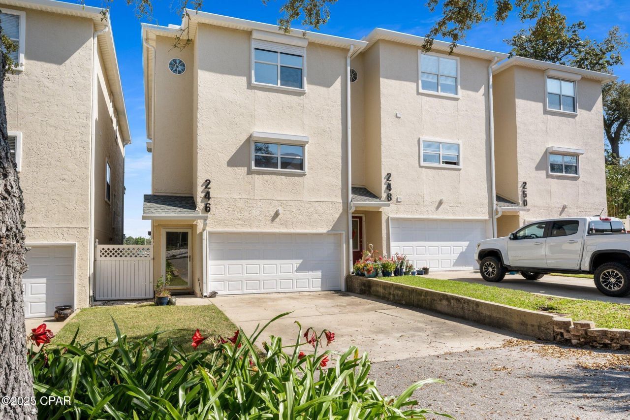 Waterfront Living in the Heart of Panama City Welcome to 246 E 3rd Place, where waterfront living meets timeless elegance. Perfectly positioned in the historic Cove neighborhood and just minutes from vibrant downtown Panama City, this stunning 3-story townhome offers the ultimate blend of comfort, convenience, and coastal charm. With 3 spacious bedrooms, 3. 5 bathrooms, and a 2-car garage, this home boasts breathtaking views of Massalina Bayou and direct Gulf access via your deeded deep-water boat slip?14x40 feet, wide and deep enough to accommodate both sailboats and larger dream vessels. Step inside to find a thoughtfully designed layout that maximizes both space and privacy. A power chair lift provides easy access to the main level. The first floor features a generous bedroom with a full bath and access to a large private deck overlooking the water?perfect for guests or a serene office space. The second floor is the heart of the home, where soaring 9-foot ceilings, Brazilian hardwood floors, and abundant natural light create a warm and welcoming atmosphere. The open-concept living and dining areas flow into a well-appointed kitchen featuring emerald black granite countertops, custom cabinetry, and an oversized pantry. On the third floor, the luxurious primary suite offers a peaceful retreat with its own private balcony and panoramic views of the harbor. There's even space for a home office or workout area. The ensuite bathroom features double vanities, a jetted soaking tub, a walk-in shower, and a spacious walk-in closet. An additional bedroom on this level comes with its own full bathroom and could easily serve as a second primary suite. Built with quality in mind, this home includes a 6-year-old roof, brand-new water heater, fresh interior paint, hurricane shutters, a fire sprinkler system, and 2x6 exterior framing. It's also prepped for an elevator, making it future-ready. Whether you're an avid boater, seeking a low-maintenance waterfront escape, or looking to enjoy the lifestyle and charm of downtown living?this home has it all. Don't miss your chance to live where every day feels like a vacation. Schedule your private tour today.