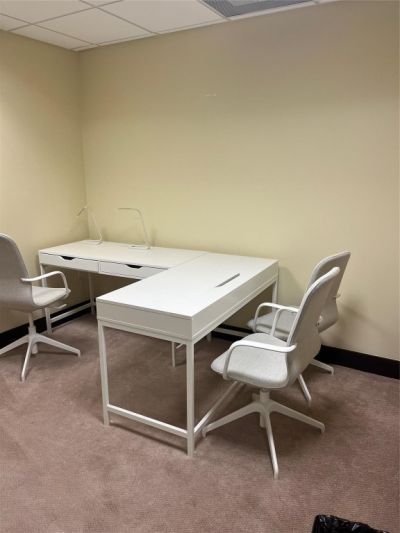 Private office available with approximately 100 sq ft, The space includes internet and electricity, one covered parking spot plus additional visitor parking, access to a conference room by reservation, a shared office kitchen, and use of the waiting area and common spaces. Ideal for professionals seeking a quiet, functional, and well-equipped workspace. Showings by appointment only. Fully furnished