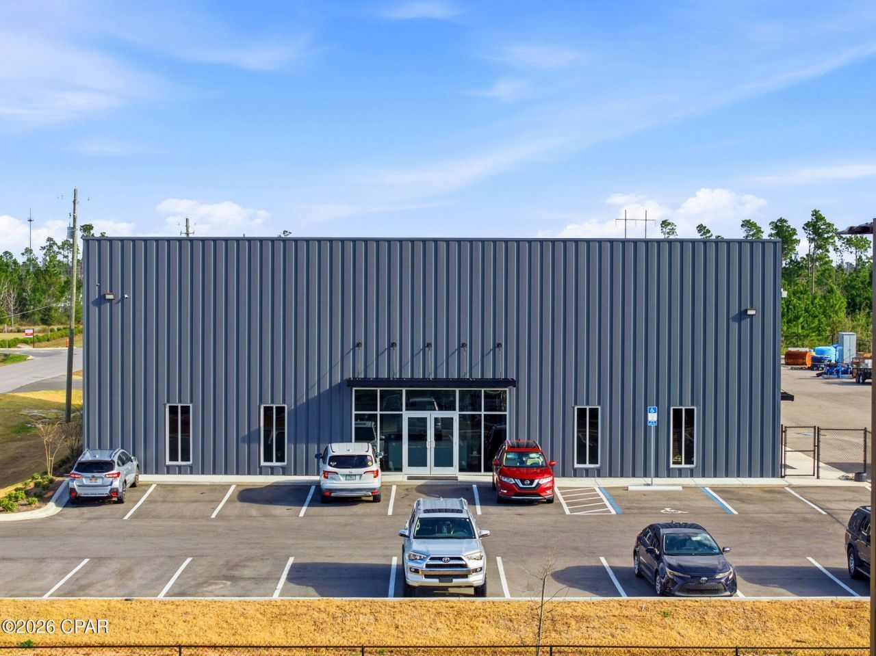 Prime commercial warehouse opportunity at 2816 Forester Trail in Cedar Grove Commerce Park of Panama City, FL! Built in 2025, this impressive 11,920SF facility sits on approximately 2 acres and features 27 paved parking spaces, with the entire parking area and lay down yard fully asphalt paved, as well as being completely fenced and gated. The property offers two points of ingress and egress, allowing for easy semi-truck access and deliveries without the need to turn around. The building includes approximately 4,067SF of heated and cooled finished office space, 7,853SF of open warehouse storage, and 4,067SF of mezzanine space located above the office area. The warehouse offers a sloped clear height ranging from approximately 16 feet on the low side to 20 feet on the high side, providing excellent vertical storage capability, and is equipped with four oversized 16-foot roll-up doors for easy access and efficient operations. Inside, the office space showcases beautiful LVP flooring, high ceilings, and recessed lighting throughout, and includes 11 private offices, a large conference room, a full kitchen, his and hers common bathrooms, and two executive offices with private bathroom access featuring walk-in shower. This versatile property is ideal for a variety of commercial or industrial uses.
