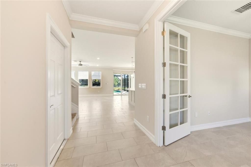 Beautiful Coral model built in 2023 offering 4 bedrooms plus a den, 3 full bathrooms, and a spacious loft. This two-story home features 2,767 sq. ft. of living space and a 3-car garage. Enjoy a heated pool and spa within a screened lanai overlooking a serene lake view. Interior highlights include: • Tray ceilings in the foyer • Crown molding • An owner’s suite with dual sinks, separate tub and shower, and a walk-in closet • Laundry room with built-in cabinetry • Kitchen with 42" cabinets, stainless steel appliances, quartz countertops, backsplash, and a walk-in pantry Located in a gated community offering a fully equipped clubhouse, fitness center, bocce, tennis and pickleball courts, and a dog park. Conveniently close to I-75, Gulf beaches, Naples, and Fort Myers.