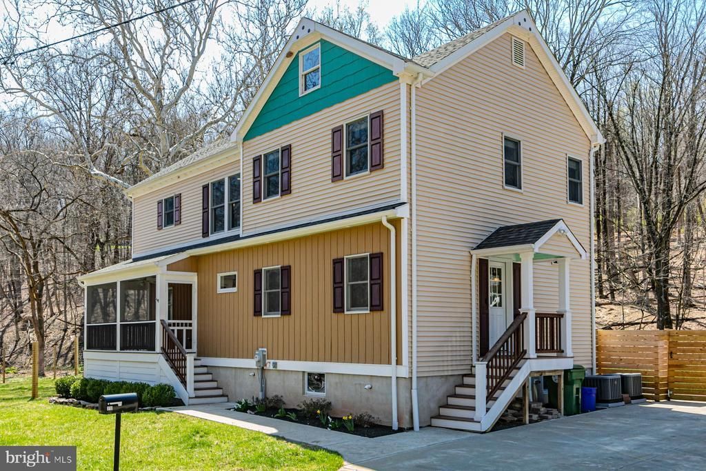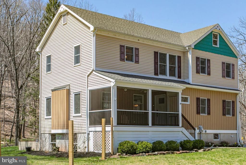 In a serene section of Skillman, where the wooded landscape creates a soothing natural environment to come home to, this custom-built house supports a lifestyle defined by calm, comfort, and thoughtful design. A screened front porch greets you first, inviting long, unhurried mornings and evenings framed by trees and filtered light. Inside, the home unfolds with a sense of craftsmanship and clarity. The kitchen anchors the main level, conceived as both a functional workspace and a social centerpiece. Quartz surfaces wrap the room in a clean, modern finish, while a suite of stainless-steel appliances supports serious cooking. A built-in double oven with a warming tray, microwave, dishwasher, refrigerator, and a five-burner cooktop with pot filler and hood reflect a deliberate attention to detail. Hardwood floors run through the kitchen, living, and dining rooms, providing warmth and continuity. Crown molding adds a tailored architectural note. Each of the three bedrooms is designed as a private suite, complete with its own full bath. The primary suite stands apart with a generous custom walk-in closet and a bath that reads like a personal spa. Two vessel sinks sit atop refined surfaces, complemented by a soaking tub and a separate shower. Outside, ample parking accommodates visitors with ease. A thoughtfully placed shed and an attractive privacy fence create structure without interrupting the organic feel of the setting. The patio and deck extend the living space outdoors. Three separate washer-and-dryer hookup options allow for adaptability across levels. A two-zone HVAC system provides balanced climate control, and Andersen windows frame the view beautifully