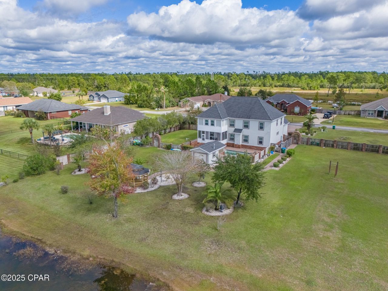 1. 2 Acres ? Under $800K ? 10 Minutes to Lynn Haven. TWO PARCELS 07899-557-000 & 07899-558-000 This beautifully designed 5BR/3BA home sits on a peaceful spring-fed lake and offers exceptional indoor and outdoor living. The main level features formal living and dining rooms, a spacious family room with fireplace, and a custom kitchen with island, pull-out cabinetry, and abundant storage. A private guest bedroom and full bath are also located downstairs. Upstairs, the oversized bedrooms offer generous closet space. The luxurious primary suite includes his and hers walk-in closets, a 20x10 sitting area, tray ceiling, private fireplace with built-ins, and a spa-style bath with claw-foot tub and separate shower. The second-floor family/bonus room with French doors and additional fireplace provides flexible living space. Notable upgrades include crown molding, chair rail, decorative archways, tile flooring, multiple fireplaces, surround sound, and extensive built-ins throughout. Outdoor living includes a screened porch, gunite pool, gazebo, and direct access to the lake for fishing, jet skiing, and water sports?all from your own backyard.