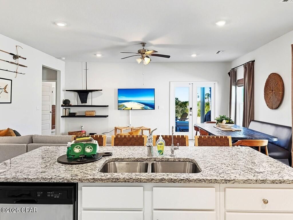 Beautifully appointed 4-bedroom, 3-bath home (Kennedy floor plan) in the WindMark Beach North community, offered fully furnished and move-in ready. This coastal retreat features granite countertops, quality finishes throughout, and a private in-law suite with its own entrance, kitchen, laundry, and a Murphy bed, ideal for guests or maximizing rental income. Enjoy gorgeous sunset views over the Gulf from the back porch, plus the convenience of an outdoor shower--perfect after a day on the sand. The home is professionally decorated and has a strong short-term rental history, making it an excellent investment or second-home opportunity. Includes a ping pong table and a third refrigerator and deep freezer in the garage, as well as all the beach toys, including 2 kayaks, needed for a relaxing beach vacation! WindMark Beach North offers an exceptional lifestyle with two community pools (one heated), a playground, walking and biking trails, and scenic boardwalks leading directly to the beach. The community is golf cart-friendly with easy access to restaurants, entertainment, and year-round community activities. Whether you're searching for a primary residence, vacation getaway, or income-producing property, this home delivers the best of coastal living. 3D tour available.