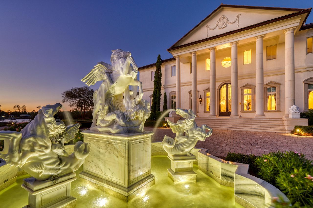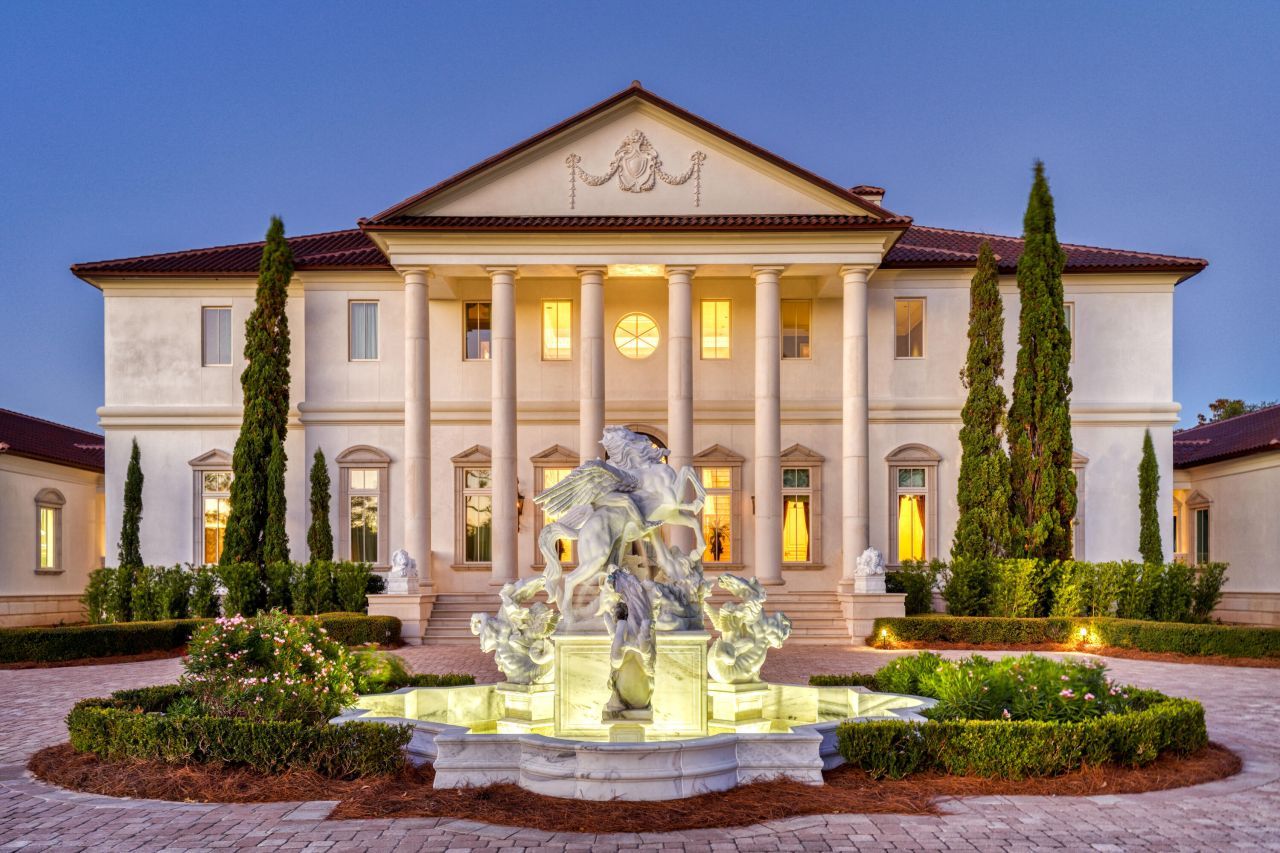 Perched on 380 feet of pristine West Bay waterfront along the Northwest Florida Gulf Coast, Villa Chimera is the most extraordinary luxury estate in Panama City Beach. Spanning 9,473 sq. ft. across three expansive lots, this 5BR/6BA/4HB masterpiece was authentically modeled after an Italian Venetian Palazzo -- designed by architect Philip Spann from hand-sketched owner drawings inspired by Renaissance master Andrea Palladio. Every finish was sourced from Italy or crafted by world-renowned artisans: a hand-carved Italian marble fountain, cushion-cut marble walls, Venetian silk upholstery, a Rome-crafted stone dining table, and a Renaissance fresco ceiling hand-painted by artist Jody Matokovich. This is not simply a Gulf Coast luxury home -- it is a one-of-a-kind legacy estate. The soaring foyer commands immediate attention with its grand Schonbek crystal chandelier, custom compass rose marble floor inlay, and solid stone staircase with marble balusters. The great room overlooking West Bay features a marble fireplace, limestone accents, and walls upholstered in Bevilacqua silk -- made in Venice and renowned worldwide. A media room with a theater-size projection screen and theatrical lighting flows seamlessly from the living space.The gourmet kitchen features Wolf and Sub-Zero appliances, a breakfast bar, separate bar area, and a fully equipped butler's pantry for effortless large-scale entertaining. All cabinetry was custom-designed by Design Galleria of Atlanta. The dining room centers around a custom stone table crafted in Rome outside the Vatican walls, beneath Venetian watermark plasterwork evoking centuries of Palazzo history.The second-level master suite is a private sanctuary with bay views, a columned balcony, and a hand-painted Renaissance fresco vault ceiling. Separate his-and-hers bathrooms each feature heated floors and double showers with body jets. A detached guest house -- connected by covered walkway -- includes a full kitchen, sitting area, private veranda, and full bath.Smart home living is delivered via a full Crestron system controlling all lighting, media, and security. Additional highlights: Kohler 100KW whole-house generator, all-copper plumbing, 4-car garage with wheelchair lift, whole-house central vacuum, monitored security cameras, LED lighting throughout, and all windows and exterior doors replaced post-Hurricane Michael. A rare and irreplaceable Florida Gulf Coast waterfront estate -- schedule your private showing today.
