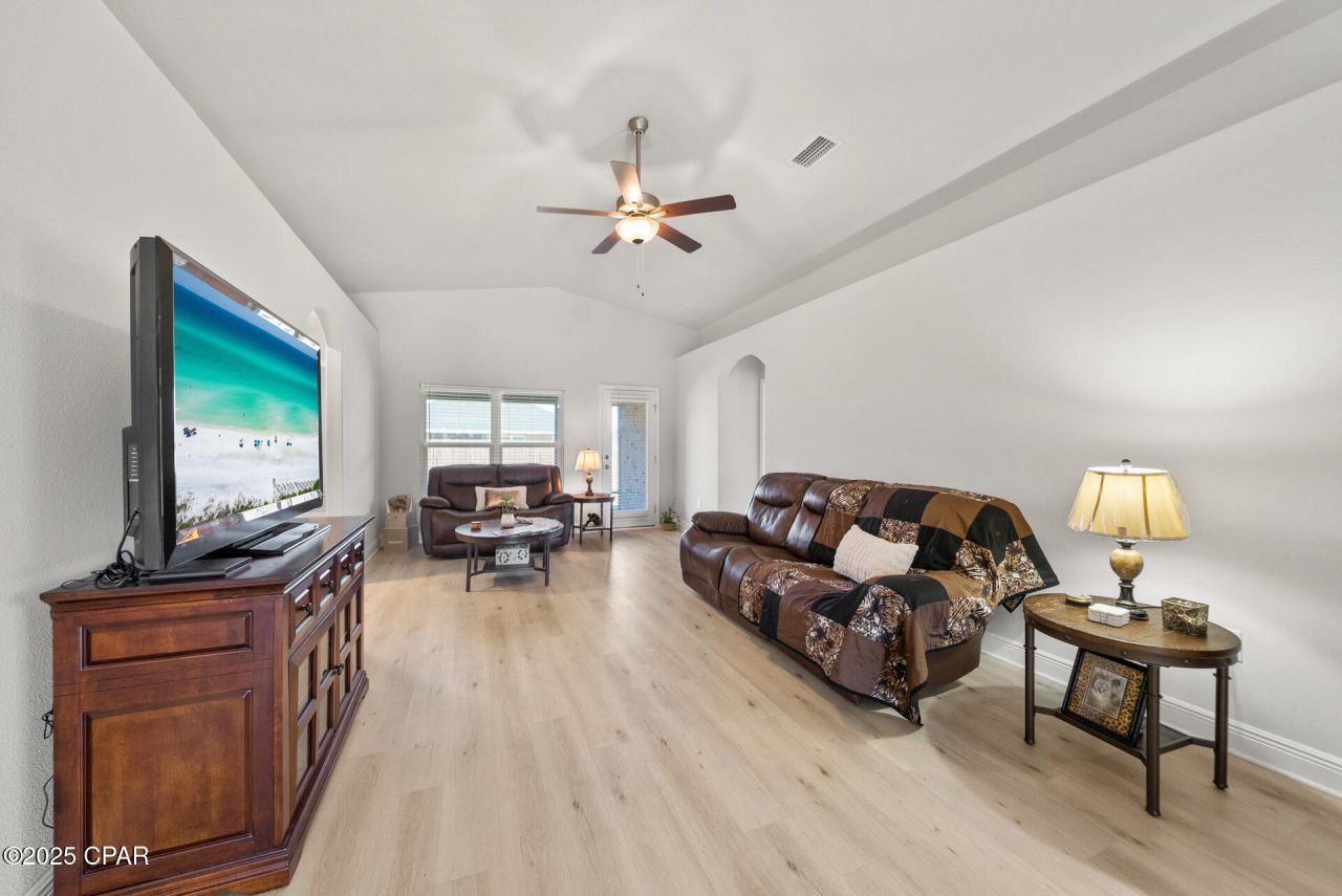 As you step inside, you'll immediately notice the attention to detail with the arched entryways, luxury vinyl flooring throughout the main living areas, and vaulted ceilings that enhance the open and inviting atmosphere. The spacious kitchen boasts granite countertops, stainless steel appliances, a cozy breakfast nook, and a convenient breakfast bar--perfect for casual dining or entertaining.
