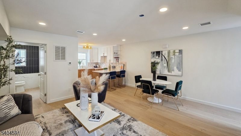 Javier Hill presents a rare opportunity to own a newly constructed townhome community in Passaic, NJ. This exclusive collection of eight thoughtfully designed two-story residences offers the space, privacy, and functionality of single-family living with the ease of modern new construction. Each home features a private, LED-lit entrance and direct interior access from a two-car garage with dedicated mechanical, storage, and laundry spaces. The main living level showcases a bright, open-concept layout ideal for entertaining and everyday living, highlighted by abundant natural light and a decorative pine wood partition that adds warmth while framing the staircase. The kitchen is both stylish and functional, featuring ceiling-height wood cabinetry with crown moulding, white granite countertops, open shelving above the island, full-size stainless steel appliances with range hood and pantry storage. A well-appointed half bath with timeless finishes completes this level. Upstairs, three generously sized bedrooms offer ample closet space, including a primary bedroom with a full walk-in closet. The full bathroom features modern fixtures, a deep soaking tub, glass shower doors, and a custom granite-topped vanity. Additional highlights include central heating and air conditioning, energy-efficient windows and doors and high-set windows for added privacy and natural light. Javier Hill delivers modern design, thoughtful details, and comfortable living crafted for today's lifestyle.