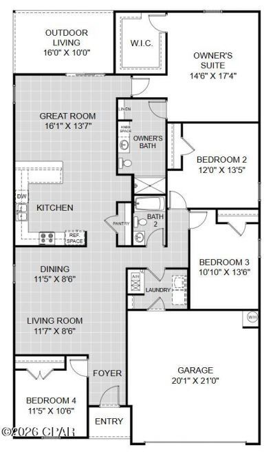 Welcome to the Palmer, a home designed to enhance family and friend gatherings with its open living concept. This spacious home boasts 4 bedrooms and 2 baths, providing ample space for all your needs. As you step into the Palmer, you'll be greeted by the inviting open living room and dining room, creating a warm and welcoming ambiance. Continuing further, you'll discover the well-appointed kitchen and great room, perfect for entertaining and creating lasting memories. The owners' suite is privately located off its own hallway, offering a tranquil retreat. It features an ensuite bathroom and a generously sized walk-in closet, providing both comfort and convenience. Additionally, this home offers three additional bedrooms, each generously proportioned to accommodate your family's needs. The laundry room is just steps away from the 2-car garage, ensuring plenty of space for storage and parking. This modern layout is complemented with quartz countertops in the kitchen and baths and tile flooring in the common/wet areas. Visit Salt Creek and discover the best kept secret along the Gulf Coast. A tremendous value just steps from the crystal-clear waters and white sand beaches of the Gulf!
