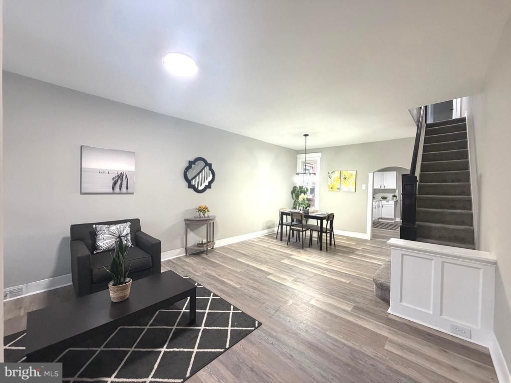 Beautifully renovated 3 bedroom, 1 bath rowhouse offering modern updates. The main level features brand new flooring throughout and a stunning new kitchen complete with white cabinetry, quartz countertops, and stainless steel appliances. Upstairs, you’ll find comfortable carpeted bedrooms and an updated bathroom with a tub/shower combination. Enjoy outdoor living with both a welcoming front porch and a back deck. The unfinished basement provides ample storage space. Move in ready and thoughtfully updated, don’t miss this opportunity to make it yours!