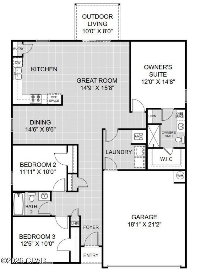 Introducing the Addison plan! This thoughtfully designed split layout features 3 bedrooms, 2 baths, and a spacious 2-car garage. The great room seamlessly blends with the dining area and kitchen, creating an open and inviting space perfect for hosting gatherings and celebrating holidays. The owners' suite is a private retreat, boasting an ensuite bathroom complete with linen and walk-in closets. The spare rooms offer ample flexibility, whether you envision them as additional bedrooms, a home office, or a versatile flex room. This split plan ensures abundant privacy while maintaining a cozy atmosphere. Convenience is key in the Addison. The laundry room is conveniently located just steps away from the garage, optimizing storage and parking space. This modern layout is complemented with quartz countertops in the kitchen and baths and tile flooring in the common/wet areas. Visit Salt Creek and discover the best kept secret along the Gulf Coast. A tremendous value just steps from the crystal-clear waters and white sand beaches of the Gulf!