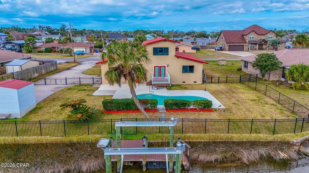 Welcome to your waterfront dream home on highly desirable North Bay! This remarkable canal-front property offers the ultimate coastal lifestyle with direct access to the water, a private inground pool, and a 12,000 lb. boat lift designed extra wide to accommodate a boat up to 30 feet. From your backyard, enjoy just a short boat ride to the open waters of the bay and the Gulf, perfect for fishing, cruising, or sunset rides. The private dock is thoughtfully equipped with a fish cleaning station and convenient stairs leading directly into the water, making it ideal for boaters and water enthusiasts alike. Prefer to store your boat out of the water? A separate on-site boat/trailer parking pad provides added flexibility and convenience. This beautifully updated 4-bedroom, 4-bath home has been completely renovated over the past few years and still shows like new. In February 2026, the downstairs flooring was replaced with durable luxury vinyl plank (LVP). There is no tile or carpet anywhere in the home, offering a seamless, modern look throughout. The kitchen is a true centerpiece, featuring newer cabinetry, granite countertops, a large island perfect for gathering, and a unique tile backsplash that complements the home's theme. The spacious dining and living areas provide plenty of room for all your furnishings and open through French doors to a private patio overlooking the stunning backyard and canal views. The first floor offers a well-designed layout with a large primary suite and private bath, an additional bedroom, two more full bathrooms, and a conveniently located laundry room. Upstairs, you'll find two additional bedrooms and another full bath. The rear upstairs bedroom enjoys beautiful water views, while the front bedroom features a private balcony, perfect for morning coffee in peaceful privacy. Designed for entertaining, this home offers multiple indoor and outdoor spaces to host family and friends. The interior has been freshly painted in recent years in a neutral palette that blends beautifully with the updated flooring. Step outside to a fully fenced backyard complete with a utility shed for additional storage. Major improvements over the last five years include a stunning red metal roof, water heater, two air conditioning units, and pool pump, providing peace of mind for years to come. The oversized garage offers abundant storage space, while the home's well and septic system, paired with a water softener, help minimize utility expenses. Additional value: The seller had professional plans drawn to extend the back porch. These plans are included with the sale and have been uploaded to the MLS, offering even more potential to customize your outdoor living space. This is truly one of those homes you must see in person to fully appreciate the thoughtful layout, upgrades, and waterfront lifestyle it offers. Contact your Realtor® today to schedule a private showing before your dream of owning a piece of paradise becomes someone else's reality. Age, schools, square footage, room dimensions, taxes, or any information contained in this MLS listing must be verified by the buyer via personal or professional inspection if important.