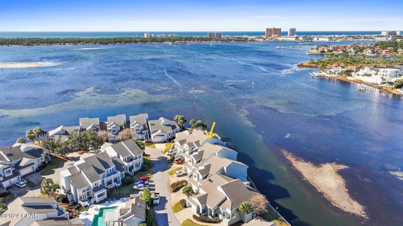 WATERFRONT LIVING WITH STUNNING SUNSET VIEWS. . . Experience the best of coastal living in this beautifully maintained 2-bedroom, 2-bath waterfront condo located in the desirable Marina Club Village at Bay Point. Situated on the first floor with convenient single-level living, this immaculate residence offers 1,486 square feet of comfortable space with breathtaking sunset views from nearly every room, including the living room, dining area, kitchen, and primary bedroom. The thoughtfully designed interior features granite countertops in the kitchen and both bathrooms, stainless steel appliances, and a spacious eat-in kitchen with breakfast bar, perfect for casual dining or entertaining. A separate dining area flows seamlessly into the living room, highlighted by a charming corner electric fireplace connection that adds warmth and character. Throughout the home you'll find low-maintenance tile and luxury vinyl plank flooring--no carpet--making beach living effortless and easy to maintain. The bedrooms are generously sized, larger than many typical beach condos, providing comfort and flexibility for owners and guests alike. Custom shutters on all windows and the front door add an elegant finishing touch. Enjoy tranquil waterfront surroundings, marina access, and the relaxed lifestyle that Bay Point is known for--all just minutes from the beaches, dining, golf, and entertainment of Panama City Beach. Whether you're searching for a primary residence, vacation getaway, or investment property, this stunning waterfront condo offers an exceptional opportunity to enjoy the best of Florida coastal living.