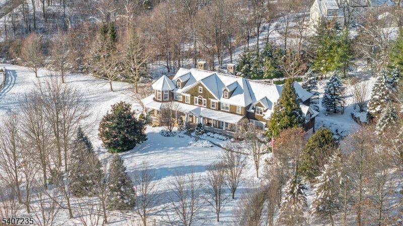 This Mark-built Hampton-inspired residence reflects timeless architecture and exceptional craftsmanship, introduced by a classic covered porch and a dramatic 20-foot foyer. Inside, 10-foot ceilings, oak floors, tall solid doors, and extensive architectural detailing define the home, including layered crown moldings, substantial base moldings, pilasters, built-up headers, and wainscoting throughout.The formal living and family rooms are distinguished by tray ceilings, fireplaces, expansive windows, and rich millwork, creating an atmosphere of warmth, scale, and classic sophistication. Generously scaled gathering spaces, a private office/library, and a first-floor en suite bedroom provide flexibility for guests or work-from-home needs.The upper level offers five bedrooms, including three en suite bedrooms among them the serene primary suite with sitting area, fireplace, and picturesque views overlooking the pond along with the convenience of a second-level laundry. Additional highlights include a generator, four-car garage, refined mechanical systems, and a setting enhanced by a scenic pond offering year-round enjoyment.Ideally located just minutes from the heart of Basking Ridge, with convenient access to Manhattan, local shopping and dining, and Ridge High School, consistently recognized among the nation's top public high schools.