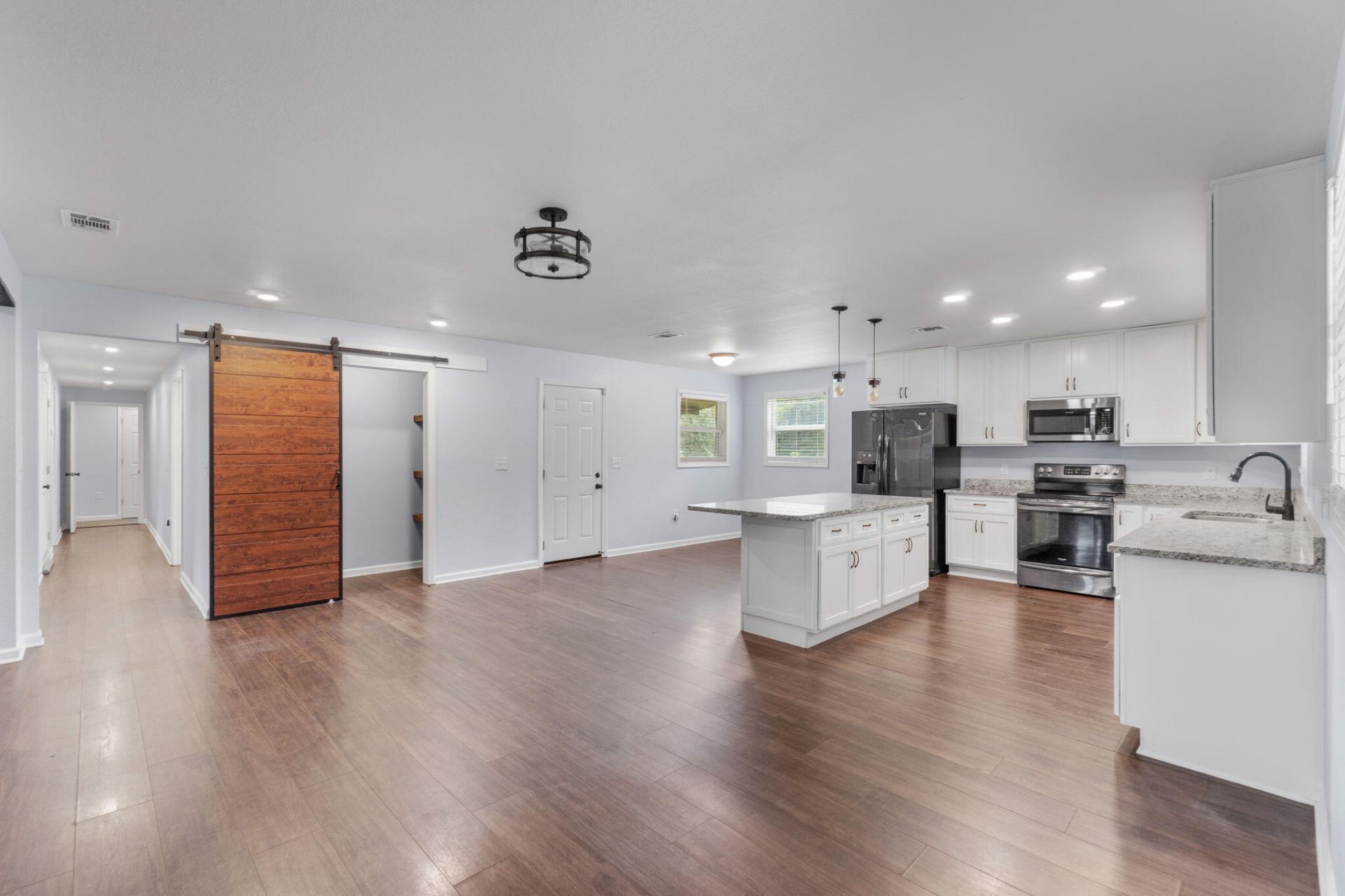 Set on a beautifully landscaped homesite, this thoughtfully updated Crestview property offers space, privacy, and exceptional value. This listing includes the home and workshop only. For those interested in the full one-acre offering, please refer to MLS ID 994934.Located south of Highway 90 and directly across from Blackwater Golf Club, the property enjoys a peaceful setting while remaining conveniently accessible to surrounding areas. Being situated on county land rather than within city limits may offer lower property taxes. The grounds are enhanced by mature fruit and nut trees, including pear, pecan, and walnut.With an effective build year of 2000 and over 2,000 square feet, the home was fully renovated inside in 2018. Updates include modern kitchen cabinetry, granite countertops stainless steel appliances, spray foam insulation, and an open-concept layout that creates a bright, functional living space.In 2024, the exterior received a fresh transformation with new paint, limewashed brick, and updated trim, contributing to strong curb appeal. Additional improvements include a new fence, a courtyard area, and a whole-home water filtration system. The Aquasana Rhino system provides filtration throughout the home with a salt-free conditioning system.The fenced backyard offers ample room for outdoor use and includes a utility shop that has been recently painted, suitable for storage, hobbies, or workshop use. The property is also equipped with a full ADT / Alarm.com security system installed in 2019.Positioned approximately 15 minutes from Duke Field and 30 minutes from Eglin Air Force Base, this property provides a balance of privacy and accessibility.Schedule your private showing today.