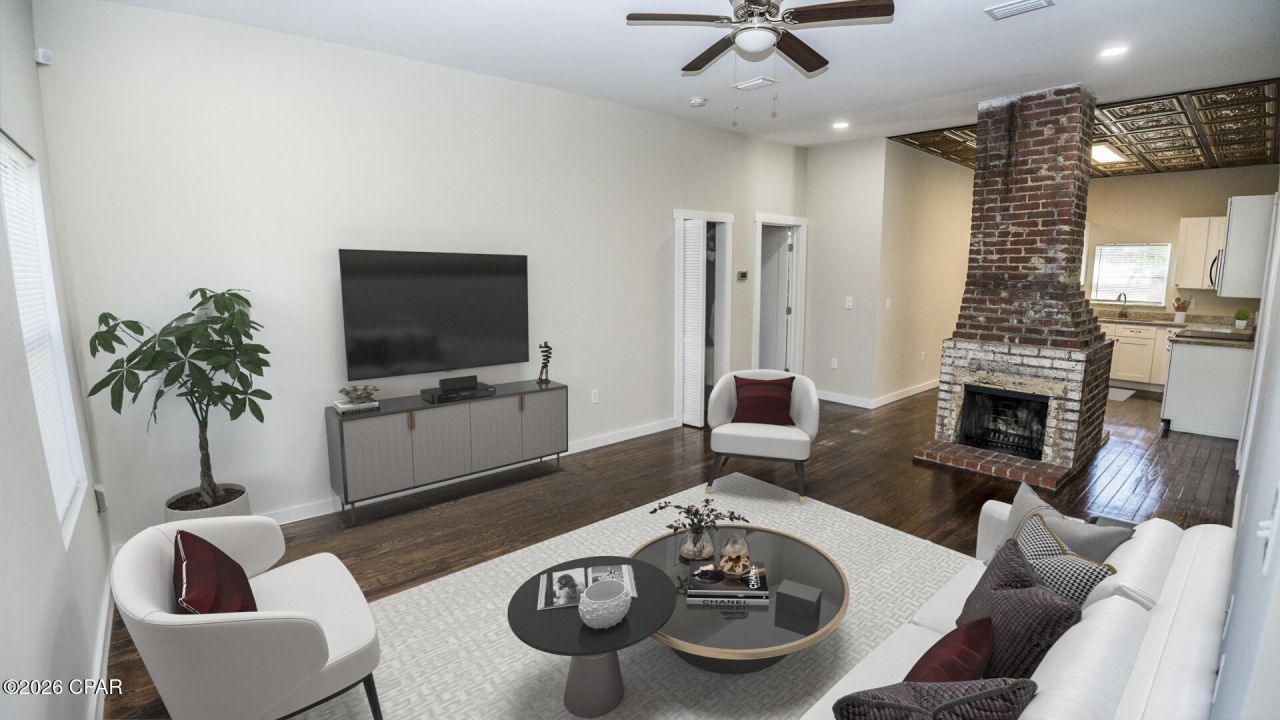 Welcome to this one-of-a-kind custom home with superb craftsmanship and luxury materials, along with unique details you have to see to believe. Classic style with brick dual sided fireplace, newly refinished wood floors, high ceilings, and modern amenities. Spacious living and open area for everyone, and lots of options for 5 bedrooms! The open living area with new kitchen will impress when entertaining, with gorgeous granite countertops and all new kitchen and stainless appliances. Giant yard is high and dry, with room to store ALL your toys. A large covered porch is your key to a shady afternoon retreat, entertaining guests, or enjoying a relaxing rain shower. Head on out to your new fireplace veranda for quiet night by the fire. Plenty off room for a pool or an additional storage building! A fully fenced yard for your privacy and security. Located within minutes to revitalized and booming downtown Panama City, with dozens of restaurants, shops, night spots, and activities. The area is abundant with parks, boating, fishing, events, and ongoing improvements to the area. Whether looking for your next home, or investing in the future of Panama City, this property has room to add additional dwelling units, pool, parking, outbuildings, and so much more! With Mixed-Use Zoning, there are options for commercial use, live-work situations, and so much more! Also offered as a commercial lease. Close proximity to Tyndall Air Force Base is great for future rentals, or customers! Alterations to the home can be negotiated. All appliances, including HVAC and Water Heaters, are within 3 years old and warrantied. This entire home has been remodeled by quality contractors and is like new, with some original touches kept for historic and aesthetic value. Furniture is virtually staged except for a few pieces that are negotiable.