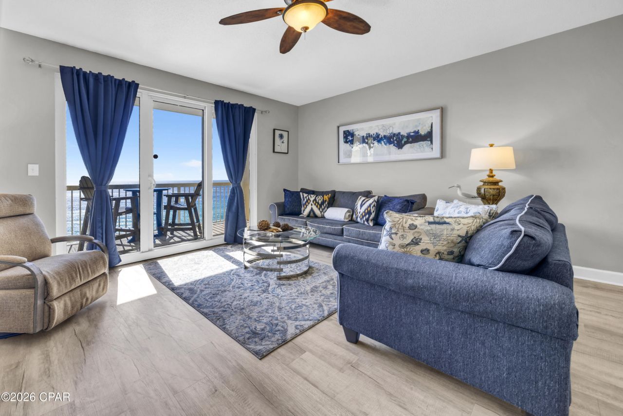 Incredible value for this turnkey 1BD/2BA Gulf-front condo at Seychelles! Perfect timing to capture the upcoming high rental season. Even better, quarterly HOA dues cover ALL utilities -- including electricity, WiFi, cable, and water -- making ownership simple and predictable. This beautifully maintained condo lives large, open, and bright. Expansive 9' sliding glass doors flood the living area with natural Florida sunshine while showcasing panoramic views of the dazzling white sand beaches and emerald Gulf waters. Step onto the private balcony to enjoy tranquil sea breezes and breathtaking views -- the ultimate setting for relaxed coastal living. Owners have spared no expense maintaining and refreshing this special property. Recent updates include new televisions in both the living room and bedroom, all-new rugs throughout the unit and on the balcony, and a full deep clean, ensuring a fresh, move-in and rental-ready presentation. Luxury vinyl plank flooring throughout and stainless steel appliances create a modern, low-maintenance interior. Offered fully furnished and rental-ready, this unit comfortably sleeps six with a king bed in the primary bedroom, built-in hallway bunks, and a sleeper sofa. Perfectly positioned within the building at an ideal elevation -- not too high and not too low -- providing exceptional views and convenient access. Located in the amenity-rich Seychelles Beach Resort, residents and guests enjoy: two Gulf-front pools & hot tub, fitness center, conference room, covered parking garage with walkover access, optional onsite rental program & management, and strong security. Ideally located near St. Andrews State Park, along with numerous dining, shopping, and entertainment options. Whether you're looking for a performing investment property or your own beachfront getaway, this condo delivers the best of Panama City Beach living on the World's Most Beautiful Beaches. All measurements to be verified by buyer.