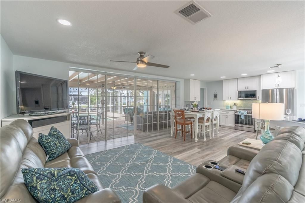 Welcome to this beautifully updated 4-bedroom, 2-bath sailboat direct Gulf access waterfront pool home, ideally located in one of Cape Coral’s most desirable neighborhoods. Offered turnkey, this property is fully equipped and ready to enjoy immediately—whether as a personal retreat or a short-term vacation rental with income potential from day one. The open-concept interior showcases modern coastal finishes throughout, including a stunning kitchen with quartz countertops, white shaker cabinetry, a pantry, and premium stainless steel LG appliances. The thoughtfully designed split-bedroom floor plan provides privacy for both owners and guests, while the cozy living area creates the perfect setting for entertaining or relaxing after a day on the water. The best thing of Florida living waits outside on your private waterfront oasis. Enjoy the heated pool, unwind around the patio firepit, or head out boating with ease from your dock featuring a 16,000 lb boat lift. With DIRECT sailboat access, you’ll be cruising to the Gulf of America in just minutes. The primary suite offers a peaceful escape with water views, large walk-in closet and an ensuite bath, while three additional bedrooms provide ample space for family and guests. A screened lanai, fenced yard ideal for pets, and inviting outdoor living areas make this home ideal for creating unforgettable memories. This home offers peace of mind with a 2019 roof, hurricane-impact windows and doors, and Kevlar/fabric hurricane roll down shutters. Located just minutes from downtown, dining, shopping, and the Cape Coral Yacht Club, this exceptional waterfront property delivers the ultimate Florida lifestyle. Ideal as a primary residence, vacation retreat, or income-producing short-term rental, this home delivers exceptional lifestyle and investment potential in a prime Cape Coral neighborhood.